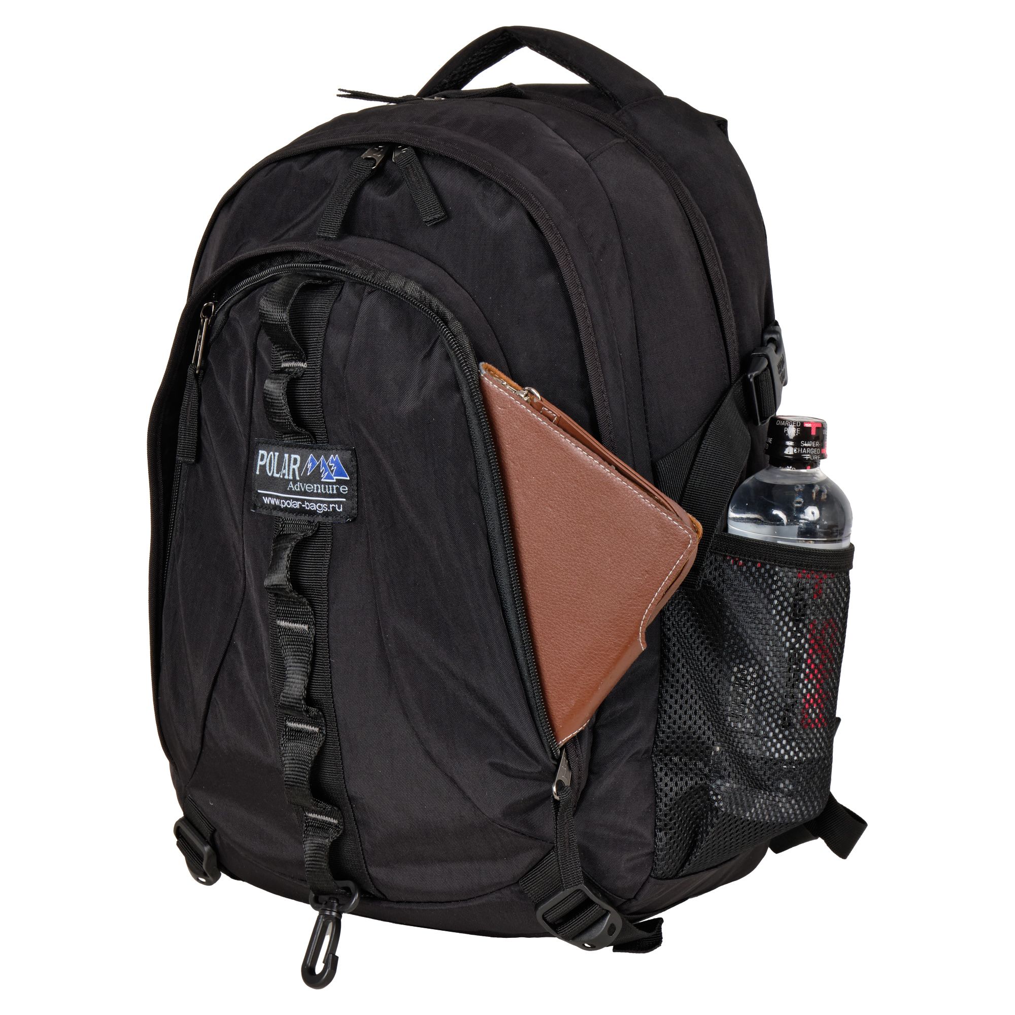 Небольшой, вместительный рюкзак фирмы Polar. Полностью вентилируемая спинка с системой Aircomfort, мягкие плечевые лямки создают дополнительный комфорт при ношении. Центральный отсек для персональных вещей и внутренним карманом для папки А4. Большой передний карман с органайзером. Так же есть грудные стяжки, фиксирующие его удобное положение. Боковой карман из трикотажной сетки для бутылки с водой.