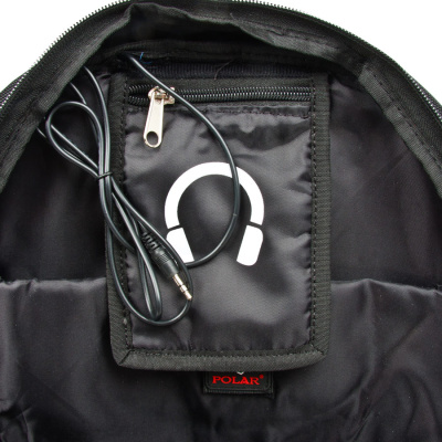 Городской рюкзак POLAR с отделением для ноутбука. В комплекте идет универсальный переходник- удлинитель для наушников 3,5 мм., выход на левой лямке рюкзака. Система циркуляции воздуха AirFlow для комфорта и максимального удобства для спины. Плечевые ремни анатомической формы. Прочная ручка для переноски рюкзака. Внутренний карман для размещения MP3-плеера. Отделение для ноутбука до 15" дюймов. Петля для солнцезащитных очков. Карман для мобильного телефона на правой лямке рюкзака. Два боковых кармана на молнии. Карман- органайзер для мелких предметов. Снаружи рюкзака два накладных кармана на молнии размерами 19 х 17 см.