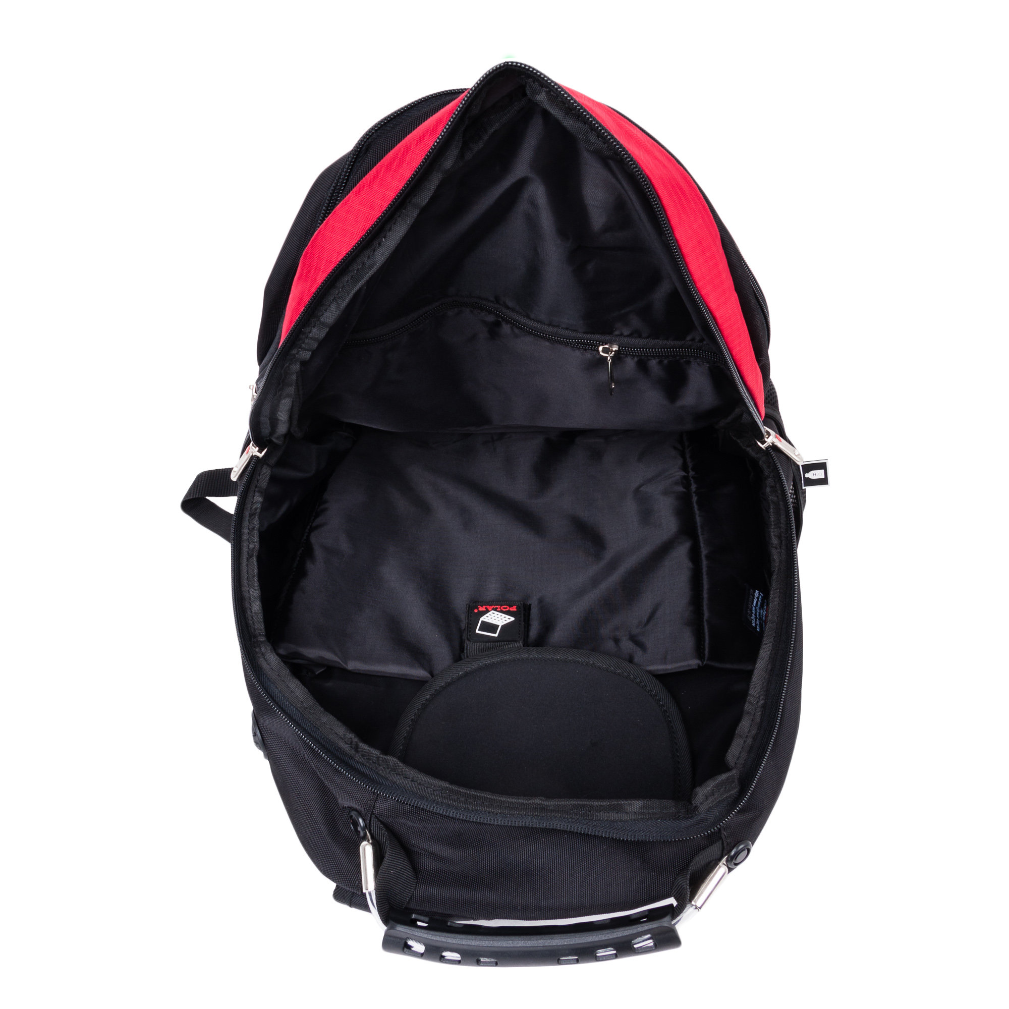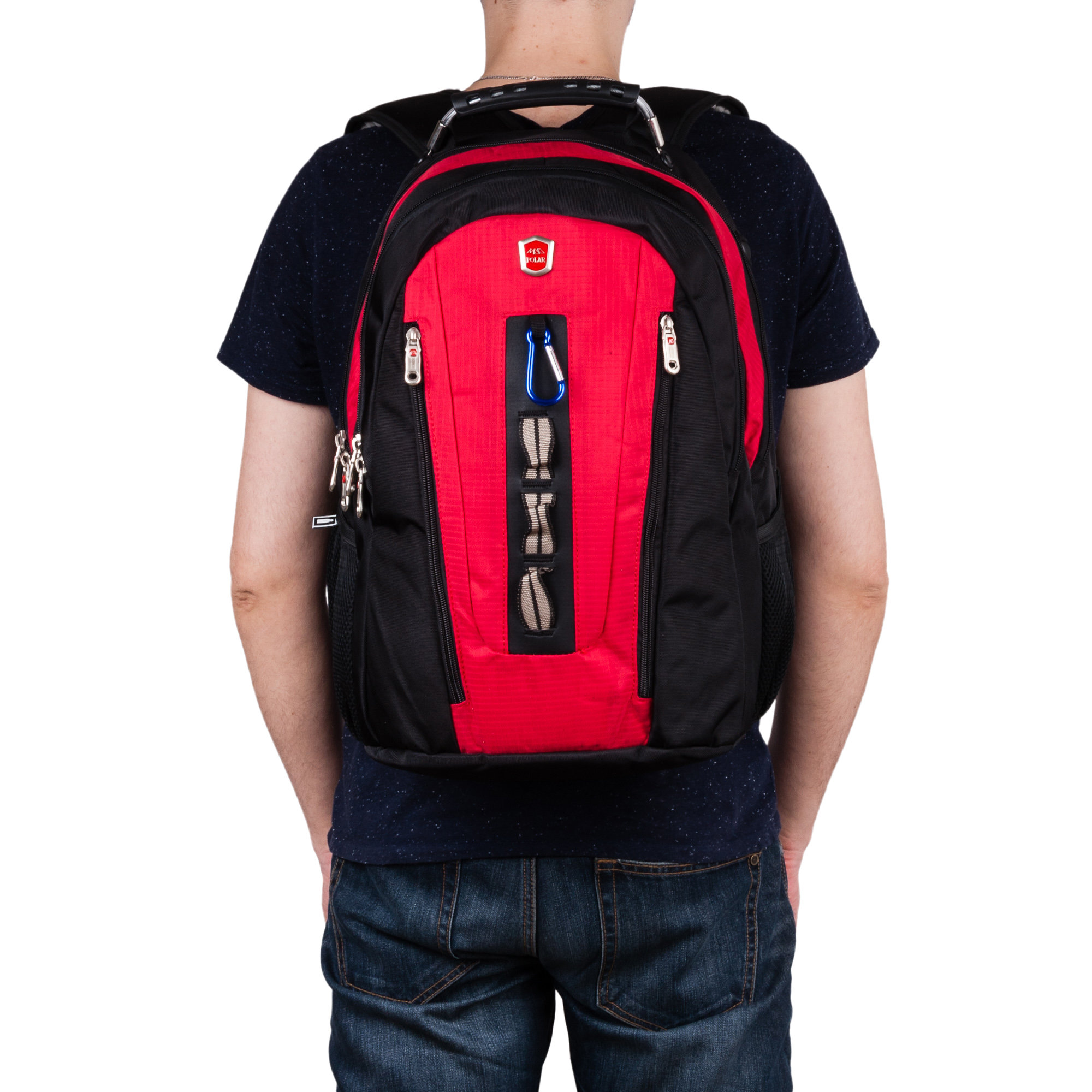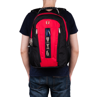 Городской рюкзак с отделением для ноутбука состоит из двух отделений ,в одном из них есть карман для ноутбука диагональю до 15,6, размеры отсека для ноутбука 38 x 29 x 2.5. Большой карман на молнии для личных вещей, а также миниатюрный открытый карман для мелких предметов. Спереди накладной карман на молнии, внутри которого органайзер и крепление для ключей. На клапане накладного кармана расположены два кармана на молнии. По бокам два кармана из мягкого сетчатого материала на резинке. Сверху эргономичная и крепкая ручка с металлическим тросом внутри для переноски, а также есть петля подвешивания.