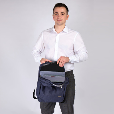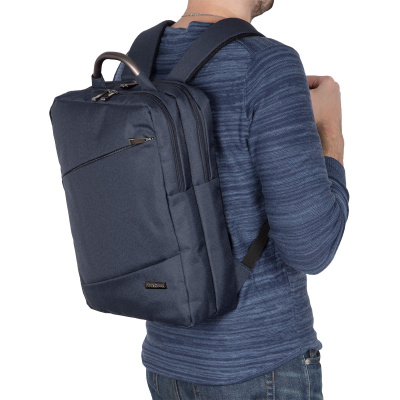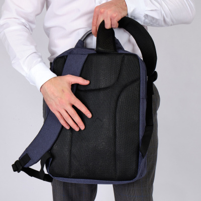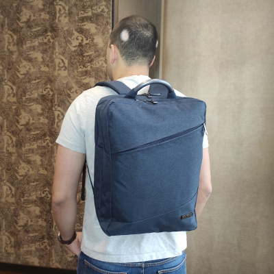 Рюкзак имеет два независимых отделения, который закрываются на молнию. Внутри первого – есть отделение для ноутбука диаганалью 15" размер отсека 38 х 27 х 2,5 и планшета, внутри второго отделения есть карман на молнии и организационная панель для канцелярии. Спереди у рюкзака скрытый карман на молнии. Спинка и лямки рюкзака отделаны мягким вентилируемым материалом, благодаря этому с рюкзаком комфортно ходить целый день. Поверхность рюкзака водостойкая. При загрязнении рюкзак чистится обычными влажными салфетками.