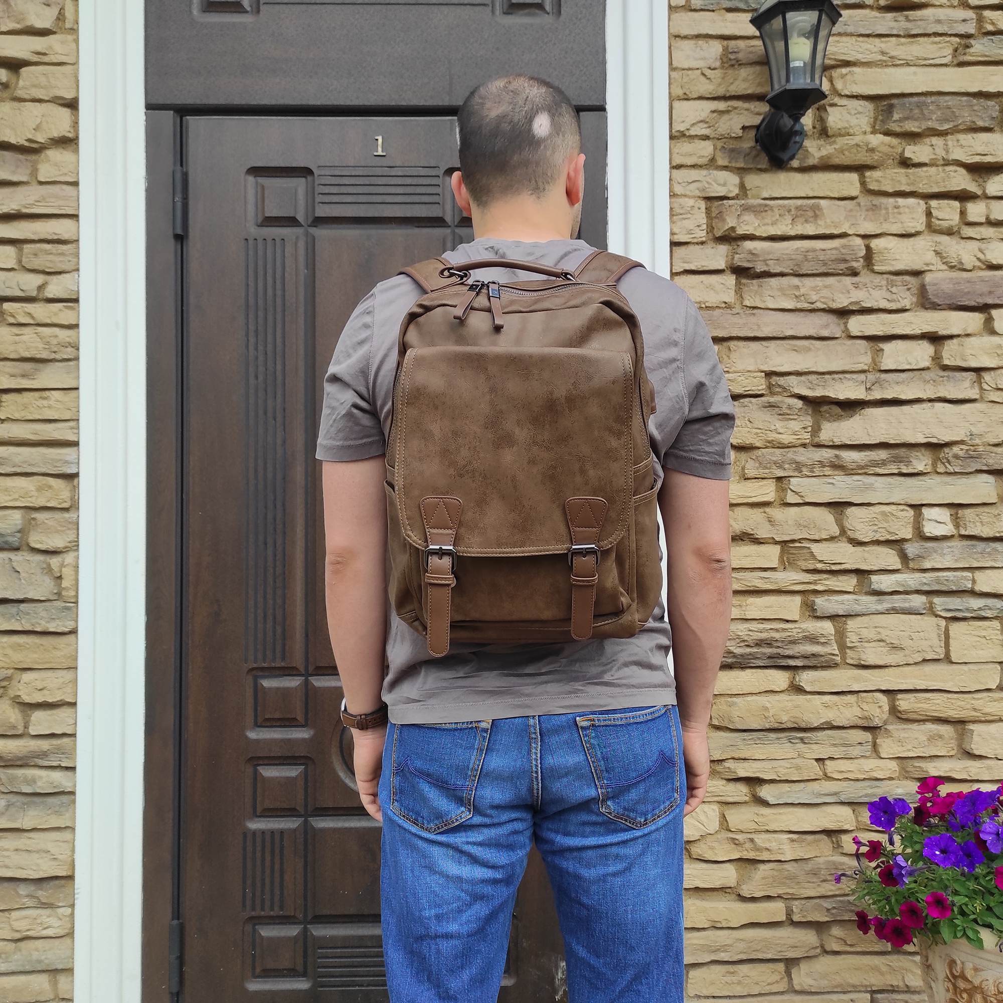 Городской стильный рюкзак фирмы POLAR из экокожи. Прекрасно подходит для ежедневного использования в повседневной жизни. Рюкзак оснащен USB-кабелем и USB - портом. Основное отделение закрывается на металлическую молнию. Внутри два небольших открытых кармана для мелочей, один на молнии, также есть отделение для планшета. Спереди есть накладной карман, закрывается на металлические застежки и молнию. По бокам есть два кармана для бутылки с водой и зонтика. Спинка и лямки рюкзака отделаны мягким вентилируемым материалом, благодаря этому с рюкзаком комфортно ходить целый день. Отлично подойдет для прогулки с друзьями.