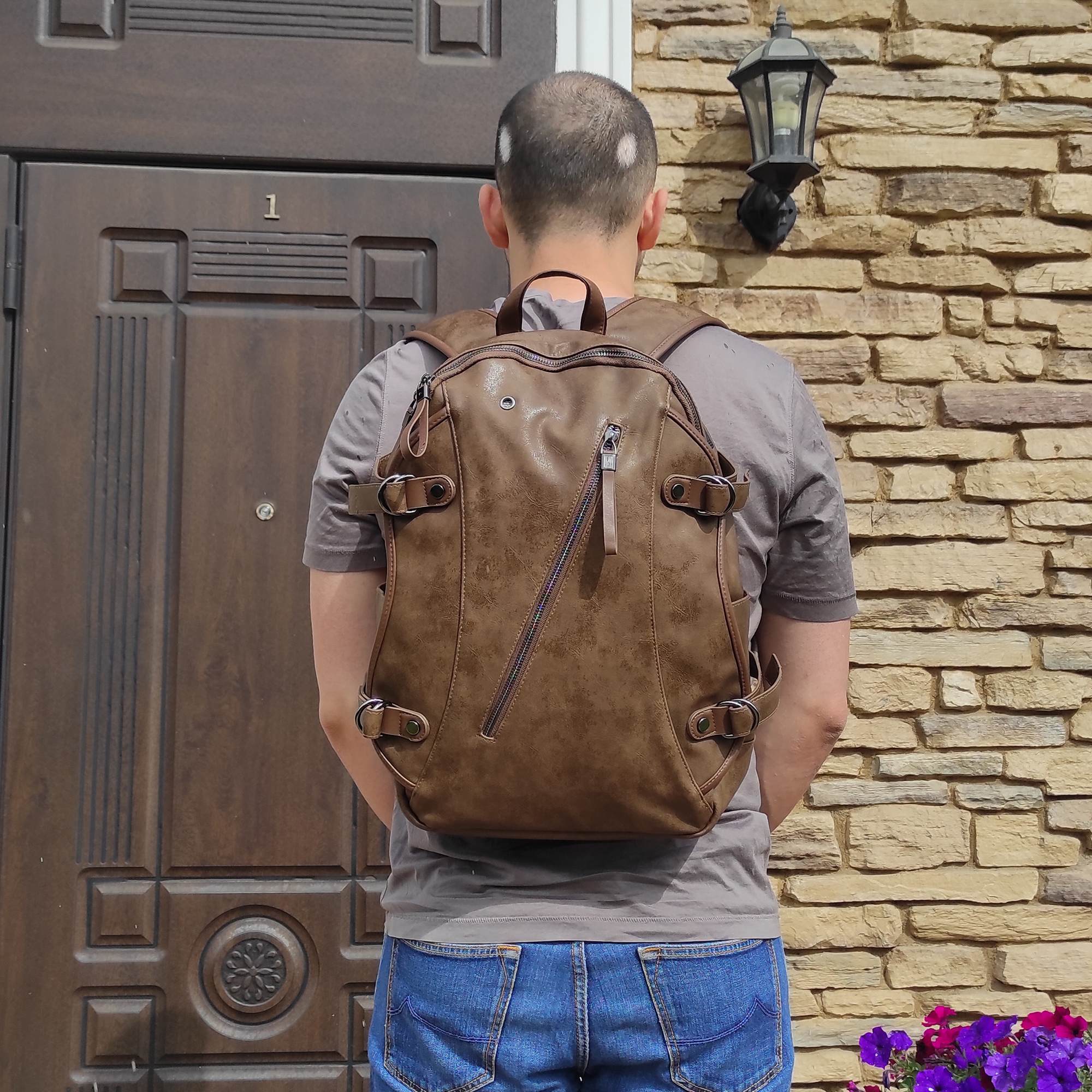 Стильный городской рюкзак фирмы POLAR выполнен из экокожи. Основное отделение закрывается на металлическую молнию, спереди, по центру располагается вместительный карман на металлической молнии, внутри этого отделения есть два открытых кармашка. Рюкзак оснащен USB-кабелем и USB - портом. На спинке рюкзака расположен потайной карман для денег, документов, которые всегда должны быть под рукой. Спинка и лямки рюкзака отделаны мягким вентилируемым материалом, благодаря этому с рюкзаком комфортно ходить целый день. По бокам есть два кармана для бутылки с водой и зонтика, также рюкзак оснащен боковыми стяжками. Внутри основного отделения есть открытый карман для ноутбука 15 дюймов, размер отделения 36 х 26 х 2,5 и небольшой закрытый карман. Прекрасно подходит для ежедневного использования в повседневной жизни.