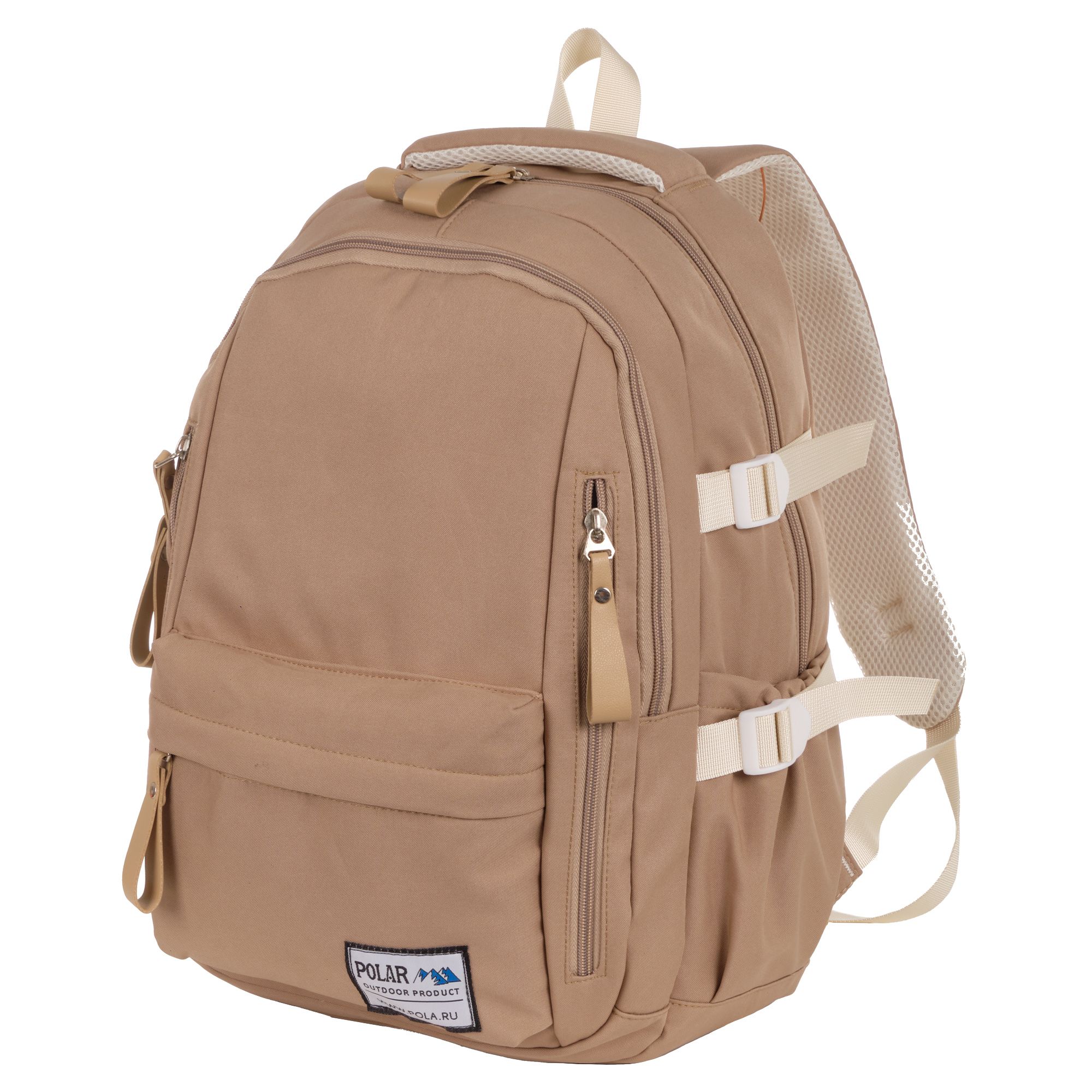 Городской рюкзак Polar для повседневной носки. Два независимых отделения на молнии формата А4. Внутри большого отделения открытый карман, где можно разместить планшет/ноутбук или документы, папки . Спереди скрытый карман с боковыми молниями, а так же передний накладной карман. Боковые карманы на резинке с фиксирующими ремнями для регулирования объема рюкзака. Сзади расположен потайной карман Антивор. Спинка и лямки мягкие, с поролоновыми вставками. Сверху рюкзака ручка для переноски и петля для подвешивания. Материал Полиэстер.