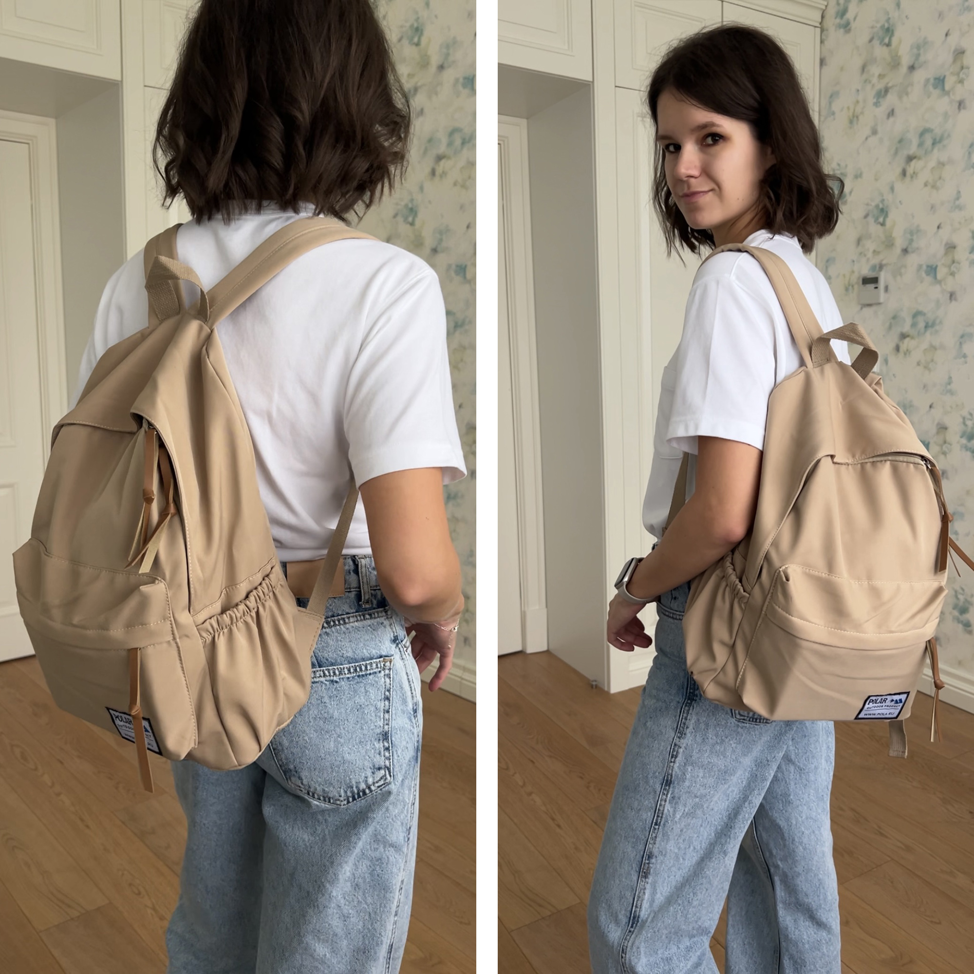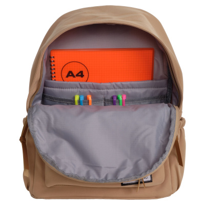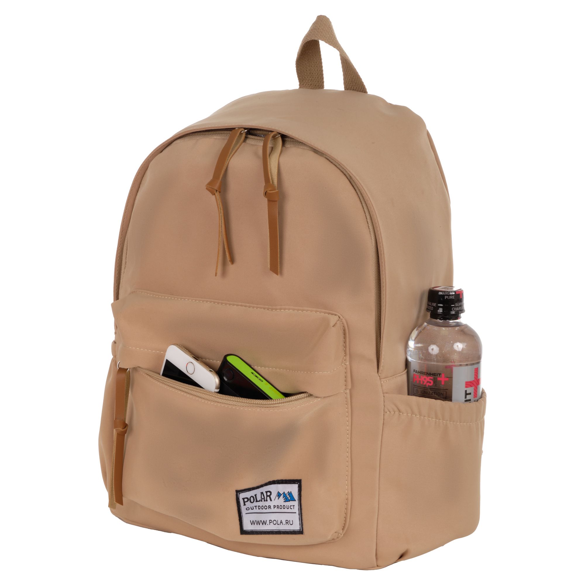 Городской рюкзак фирмы Polar имеет мягкую поролоновую спинку и мягкие лямки. Рюкзак состоит из одного отделения, которое закрывается на молнию. Внутри отделения один карман на молнии и два небольших открытых кармашка. Спереди объемный карман для небольших предметов. По бокам два кармана на резинке. Сзади потайной небольшой кармашек. Максимальная длина лямок 80 см. Высота ручки 8 см.