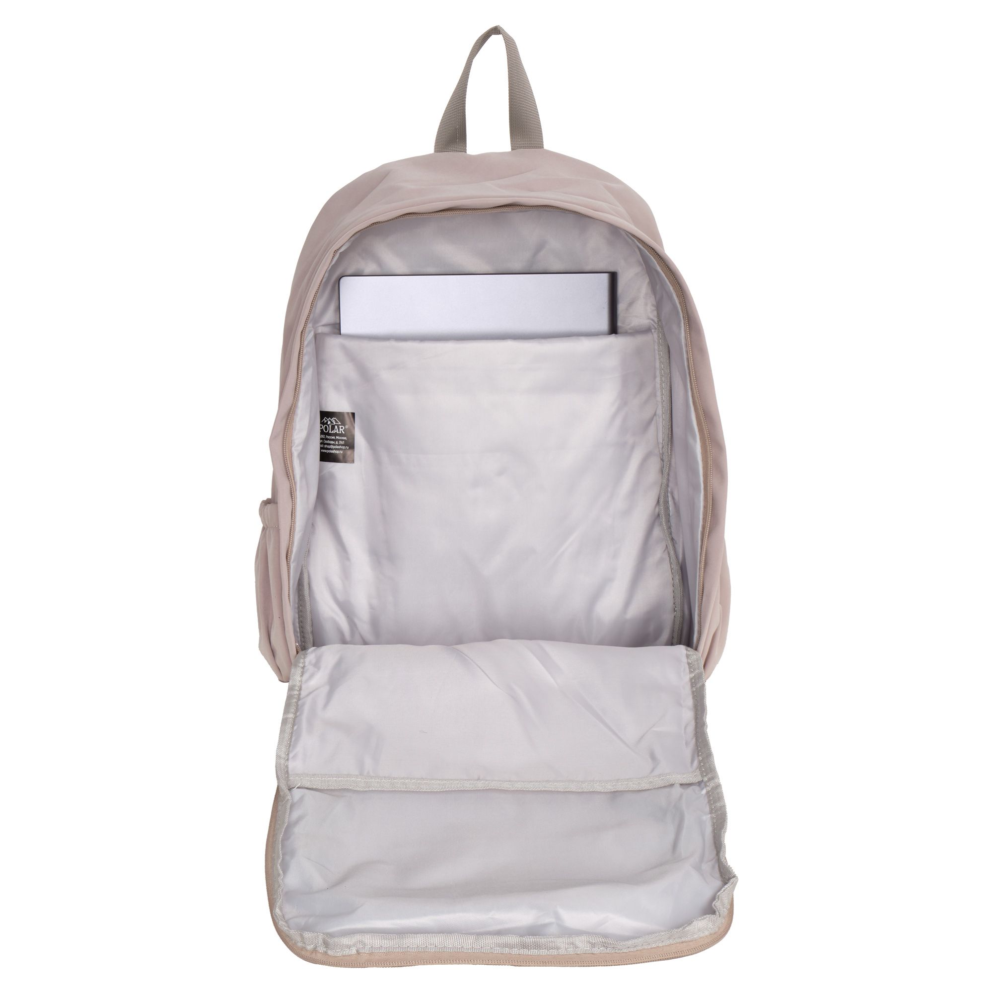 Городской рюкзак Polar для повседневной носки. Два независимых отделения на молнии формата А4. Внутри большого отделения открытый карман, где можно разместить планшет/ноутбук или документы, папки формата А4. . Боковые карманы на резинке.Спинка и лямки мягкие, с поролоновыми вставками. Сзади есть ремень, можно одень рюкзак на ручку чемодана. Сверху рюкзака ручка для переноски и петля для подвешивания. Материал Полиэстер.