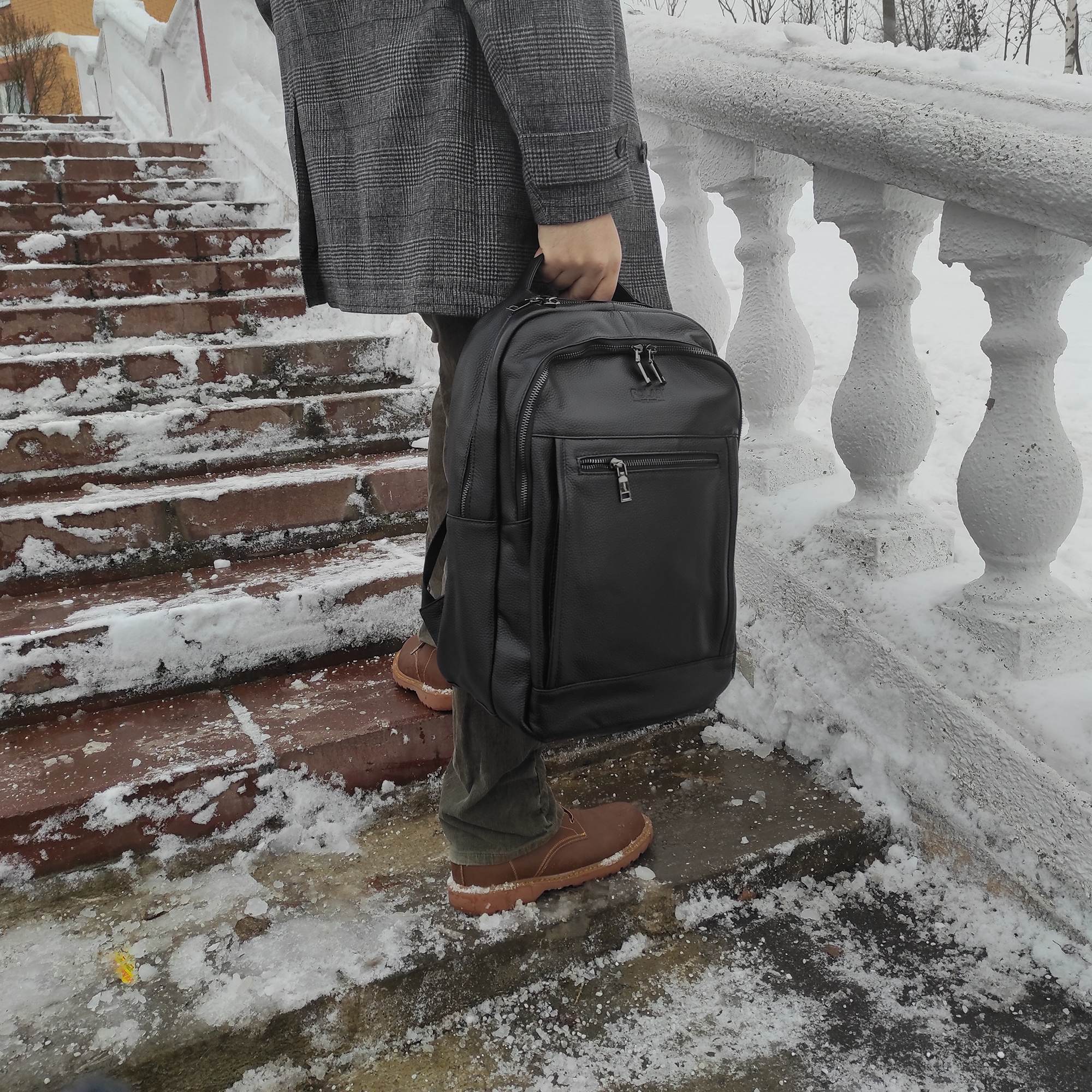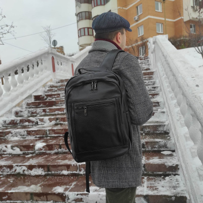 Стильный мужской рюкзак фирмы Polar изготовлен из натуральной кожи. Модель отлично подойдет для повседневного ношения и прогулками с друзьями. Основное отделение закрывается на металлическую молнию. Внутри небольшой карман на молнии для карточек, ключей и один открытый кармашек. На передней стенке рюкзака два накладных кармана на молнии, на обратной стороне карман на молнии. Длина лямок 101 см., ширина 7 см.