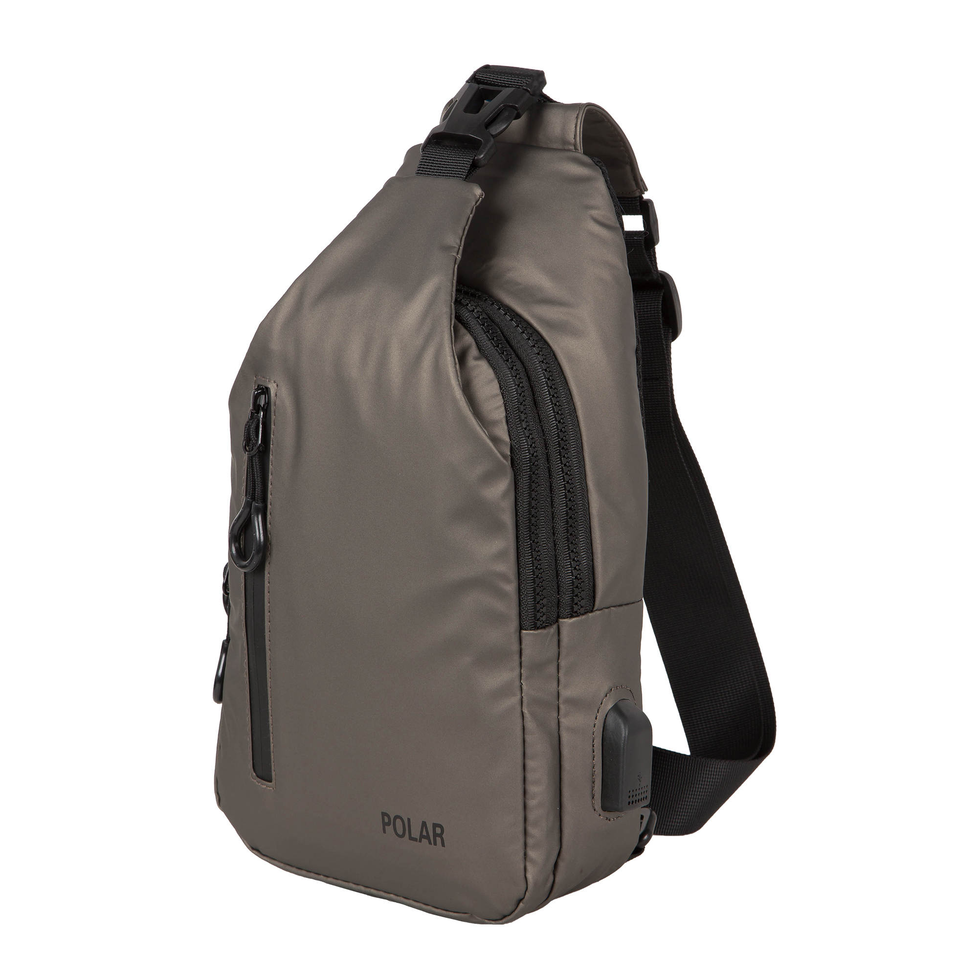 Однолямочный рюкзак фирмы POLAR выполнен из водостойкого полиэстера, что позволяет при загрязнении чистить его обычными влажными салфетками. Модель состоит из двух отделений, одно из отделений отлично подойдёт для кошелька, документов, мобильного телефона, очков и ключей, внутри основного отделения есть открытый кармашек и USB-переходник. Спереди есть карман на молнии. Рюкзак можно носить через плечо, а также крест-накрест с помощью перемещения лямки, максимальная длина которой 105 см. Ширина лямки 3,8 см. Прекрасно подойдёт для прогулок по городу, велосипедных поездок или путешествий.