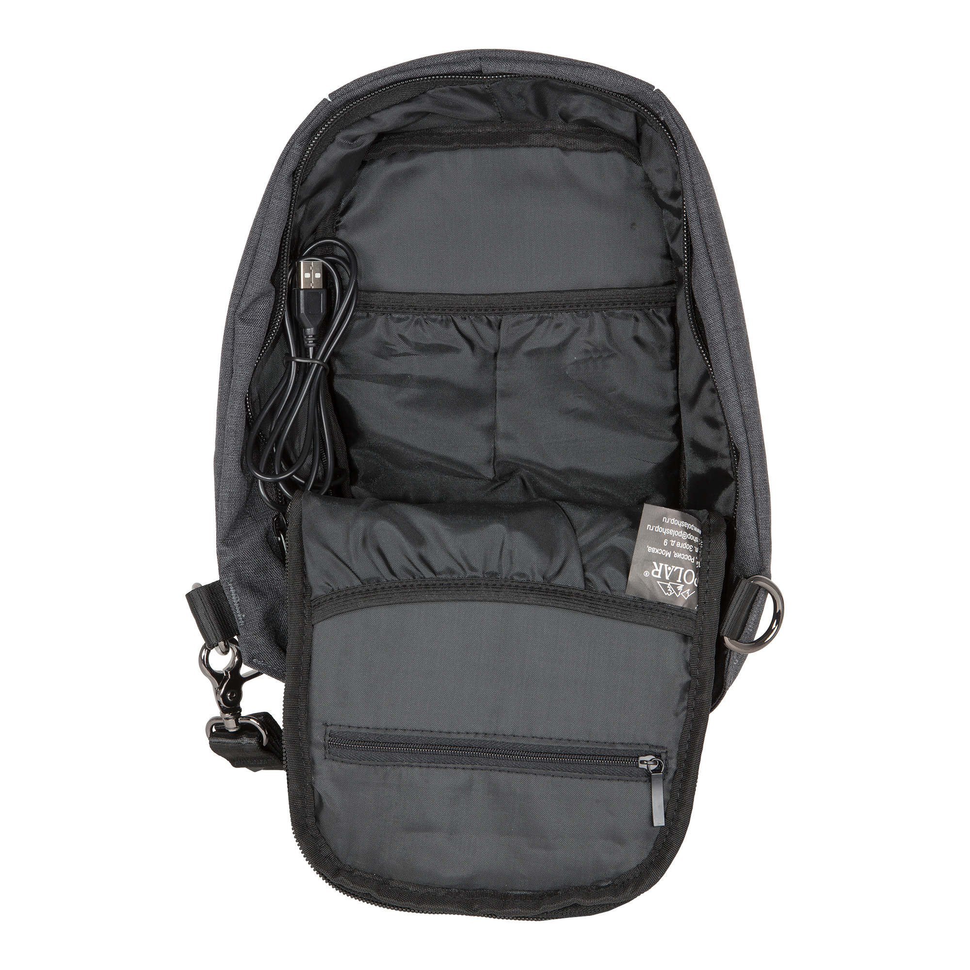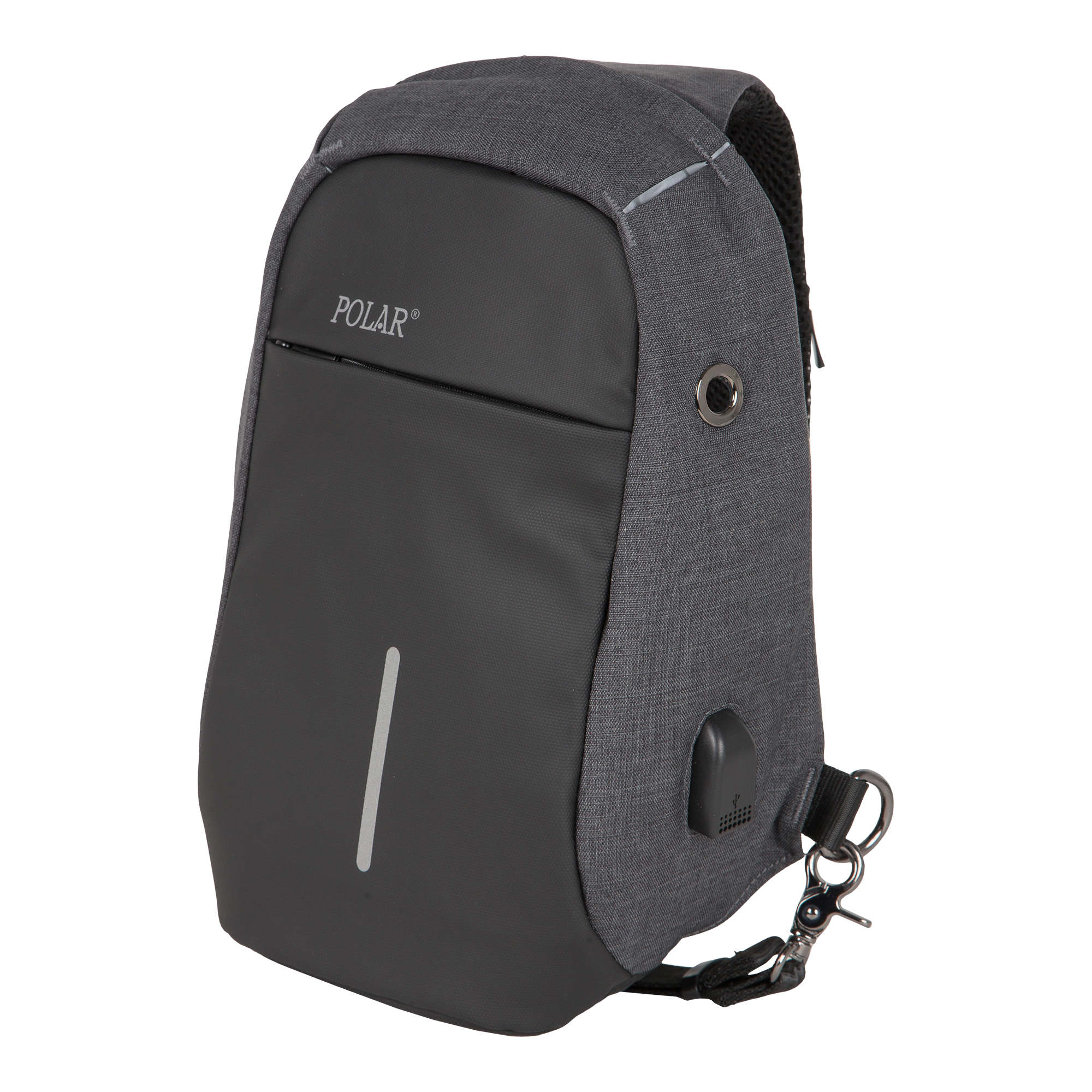 Ультрамодный миниатюрный однолямочный рюкзак POLAR станет надёжным спутником, как в условиях городской жизни, так и на отдыхе и прекрасно подойдёт для прогулок по городу, велосипедных поездок или путешествий. Рюкзак состоит из основного отделения, предназначенного для стандартного EDC набора, состоящего из кошелька, документов, мобильного телефона, очков, ключей... Спереди рюкзака есть карман на молнии, а на спинке модели расположен потайной карман для крупных сумм денег, билетов, важных документов. Рюкзак оснащен USB-кабелем и и USB - портом.Рюкзак можно носить через левое и через правое плечо, с помощью перемещения лямки, максимальная длина которой 110см.