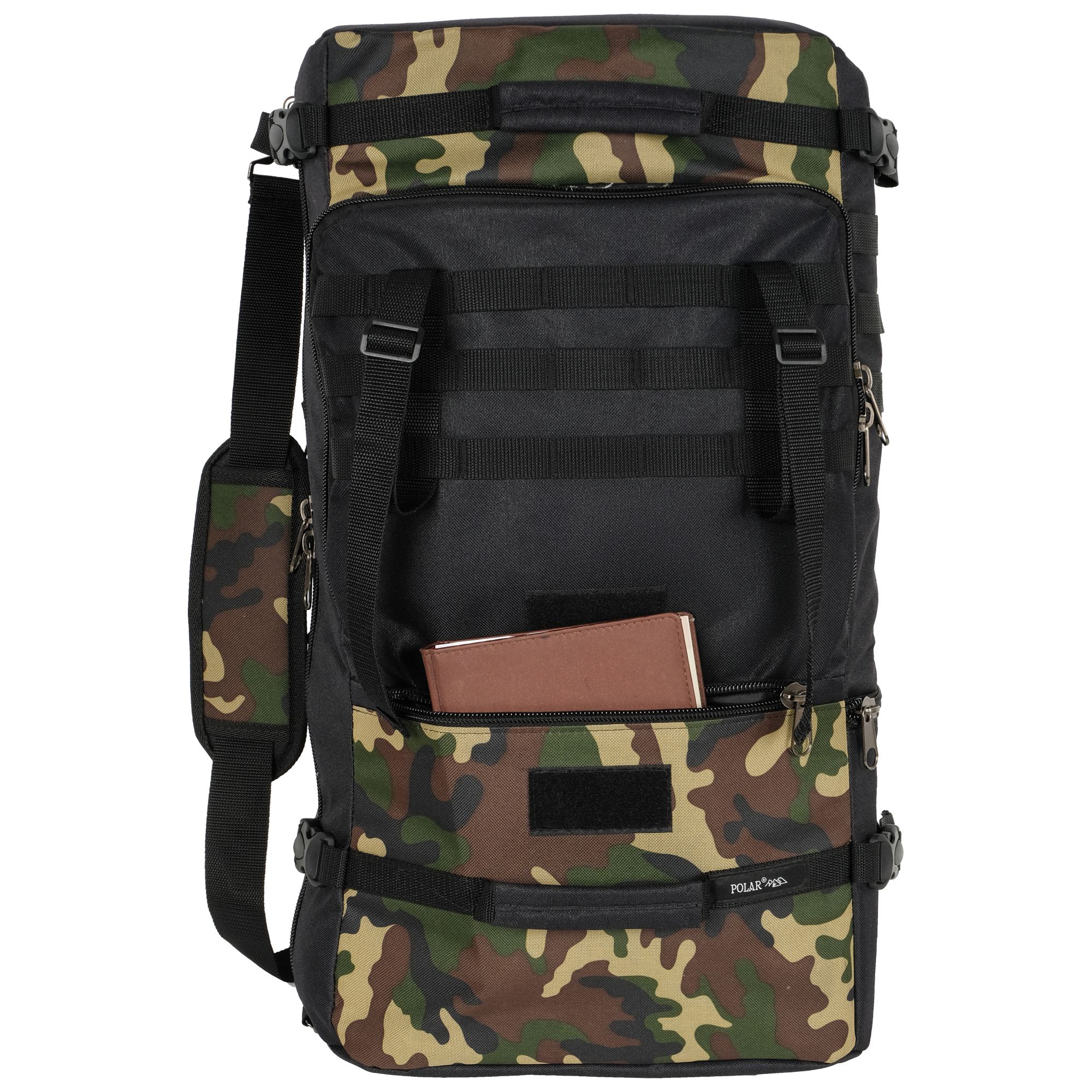 При необходимости, рюкзак легко трансформируется в большую дорожную сумку, если взять его за боковую ручку длина и убрать лямки под дополнительное отделение, отстегнув его сверху и закрыв на молнию. В комплекте есть съемный, регулируемый по длине ремень, длина до 135 см.