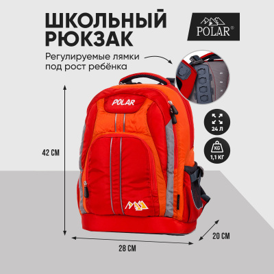 Рюкзак фирмы Polar изготовлен из ткани с водоотталкивающей пропиткой. Жесткая спинка рюкзака имеет специальные вставки для лучшего воздухообмена. Новая конструкция лямок позволяет регулировать их не только по длине, но и согласно Вашему росту. Специальное крепление в верхней части каждой лямки поможет отрегулировать их так, что рюкзак сможет носить как взрослый, так и ребенок, не создавая дискомфорта для спины. Жесткое дно делает рюкзак устойчивым и дополняет удобством при ношении.