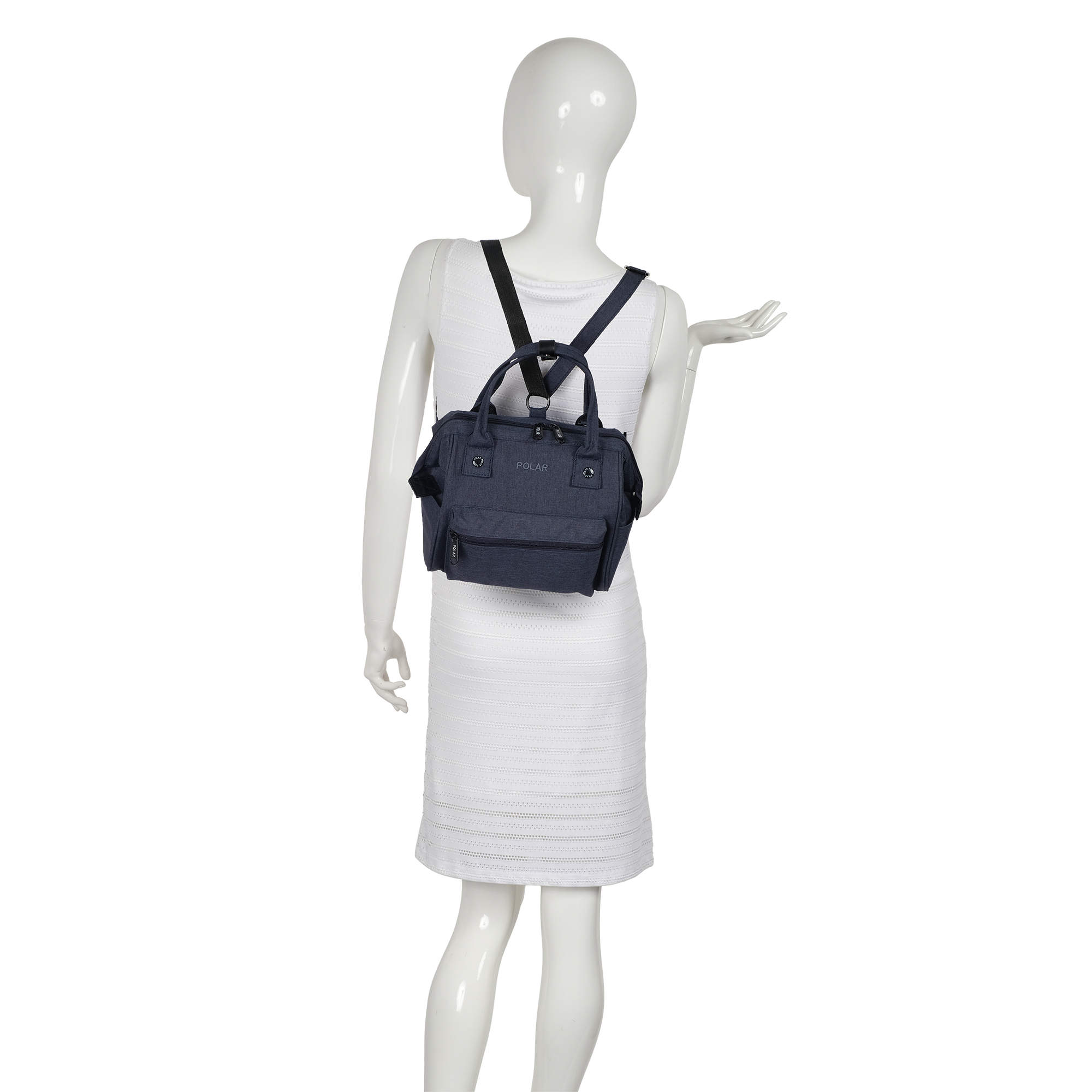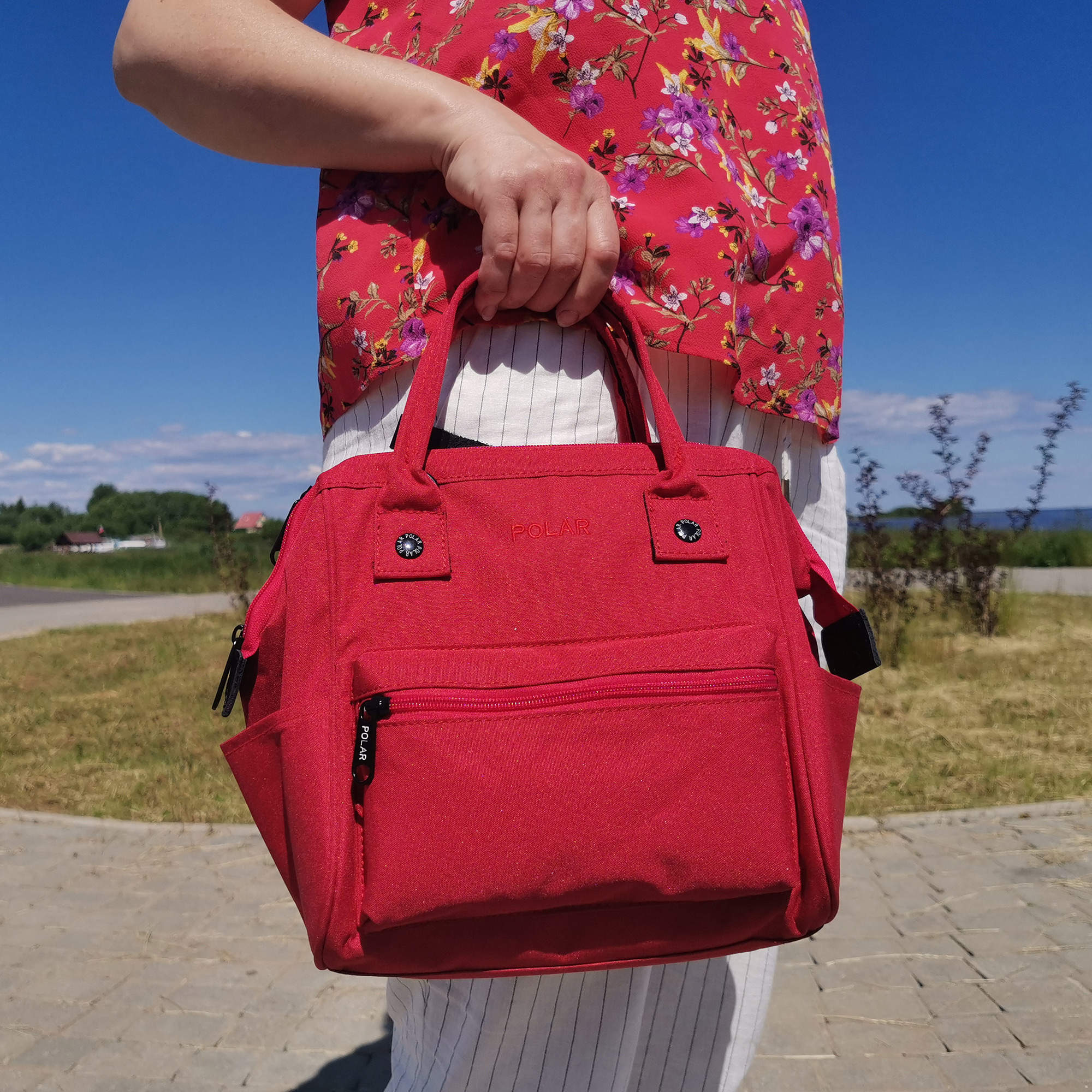 Миниатюрная, стильная сумка-рюкзак фирмы POLAR выполнена из полиэстера. Одно отделение на молнии. Внутри есть два открытых кармашка, и один на молнии. Спереди объемный карман для небольших предметов, закрывающийся на молнию и два открытых карманы по бокам. У рюкзака есть две ручки, высотой-10см. и съёмная регулируемая лямка, длиной 185 см.