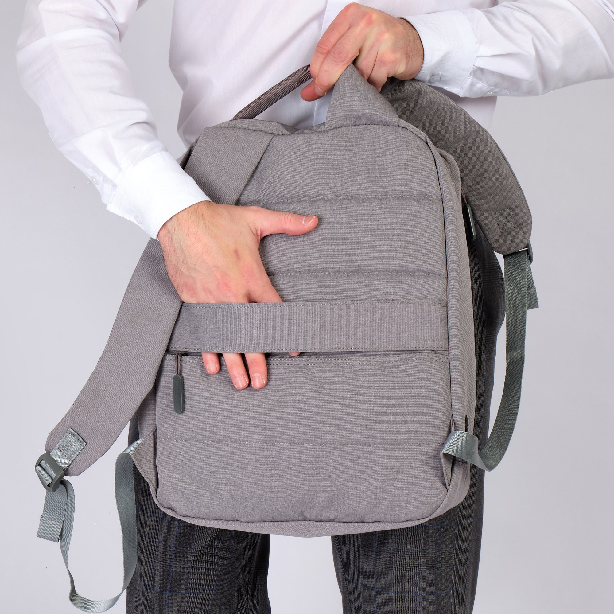 Минималистичный дизайн этого рюкзака создан специально для деловых людей или студентов и идеально подходит для повседневного ношения или коротких поездок. Модель имеет универсальную расцветку, которая прекрасно сочетается как с повседневной одеждой, так и с офисным дресс-кодом.