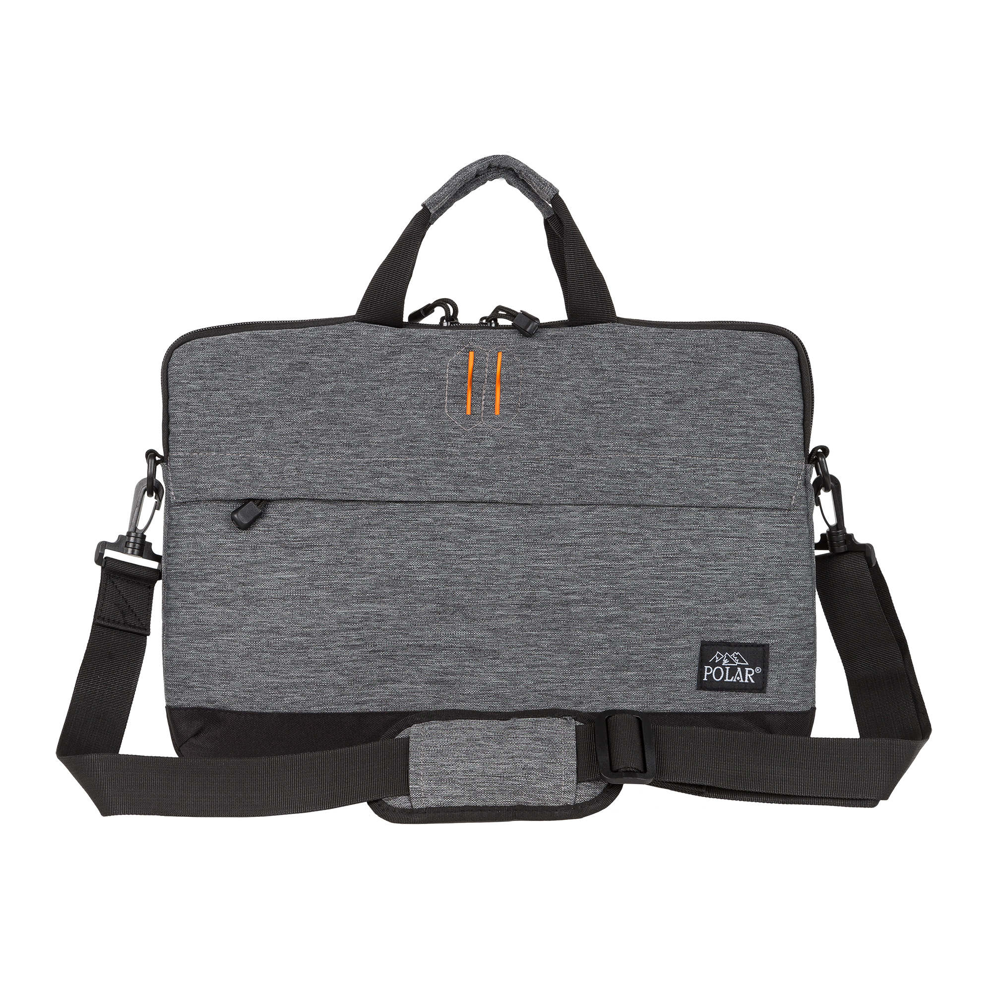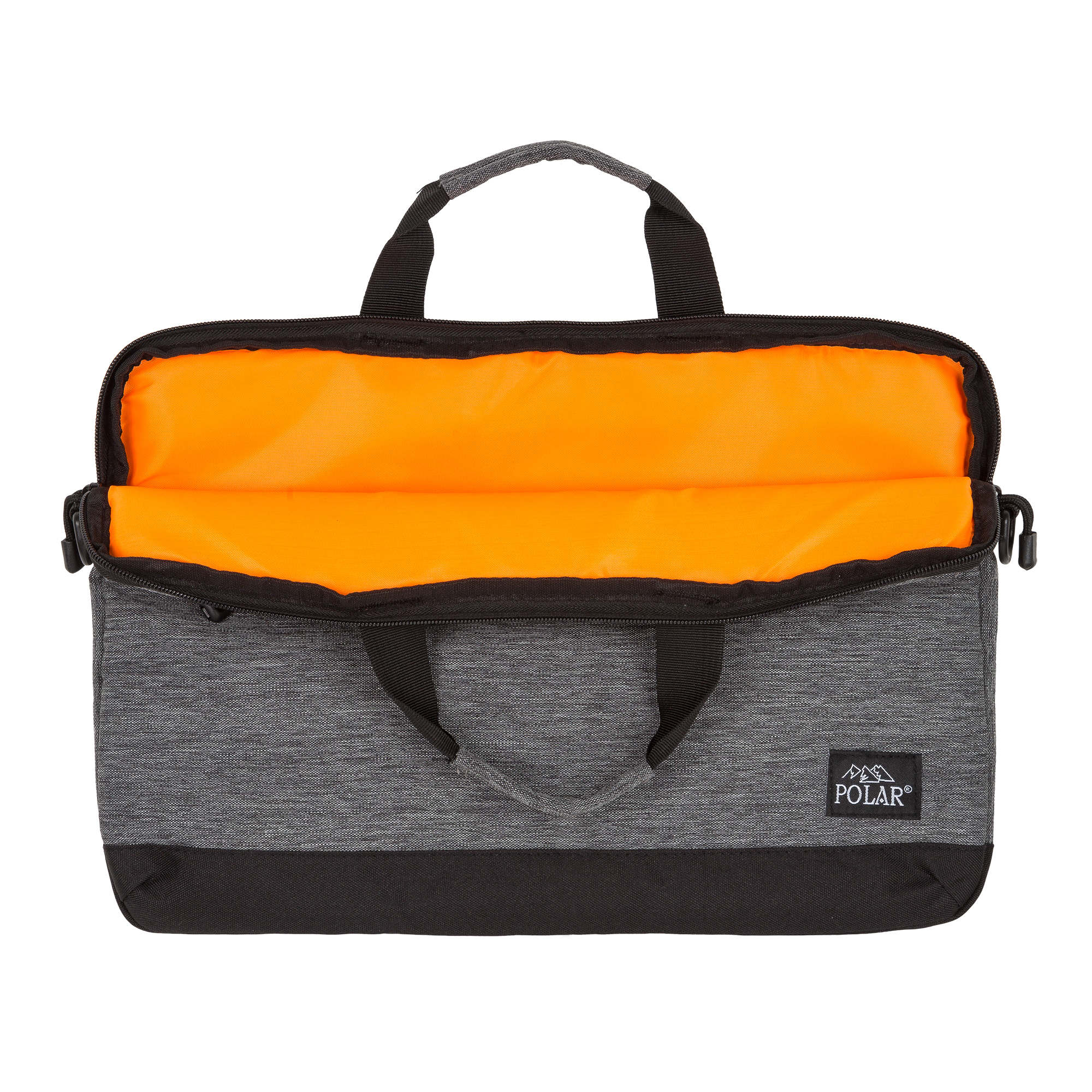 Стильная сумка-папка POLAR прекрасно подойдёт для деловых встреч и переговоров, модель выполнена в минималистичном дизайне и имеет универсальную расцветку, которая прекрасно сочетается как с повседневной одеждой, так и с офисным дресс-кодом. Сумка состоит из основного отделения, в которое прекрасно поместится ноутбук диагональю 15,6. Спереди модели есть удобный вместительный карман на молнии. У папки есть две ручки для переноски, высота которых составляет 8,5 см и съёмный регулируемый ремень, высота которого 117см. Особую изюминку придаёт контрастный оранжевый цвет, в котором выполнено внутреннее обрамление сумки.