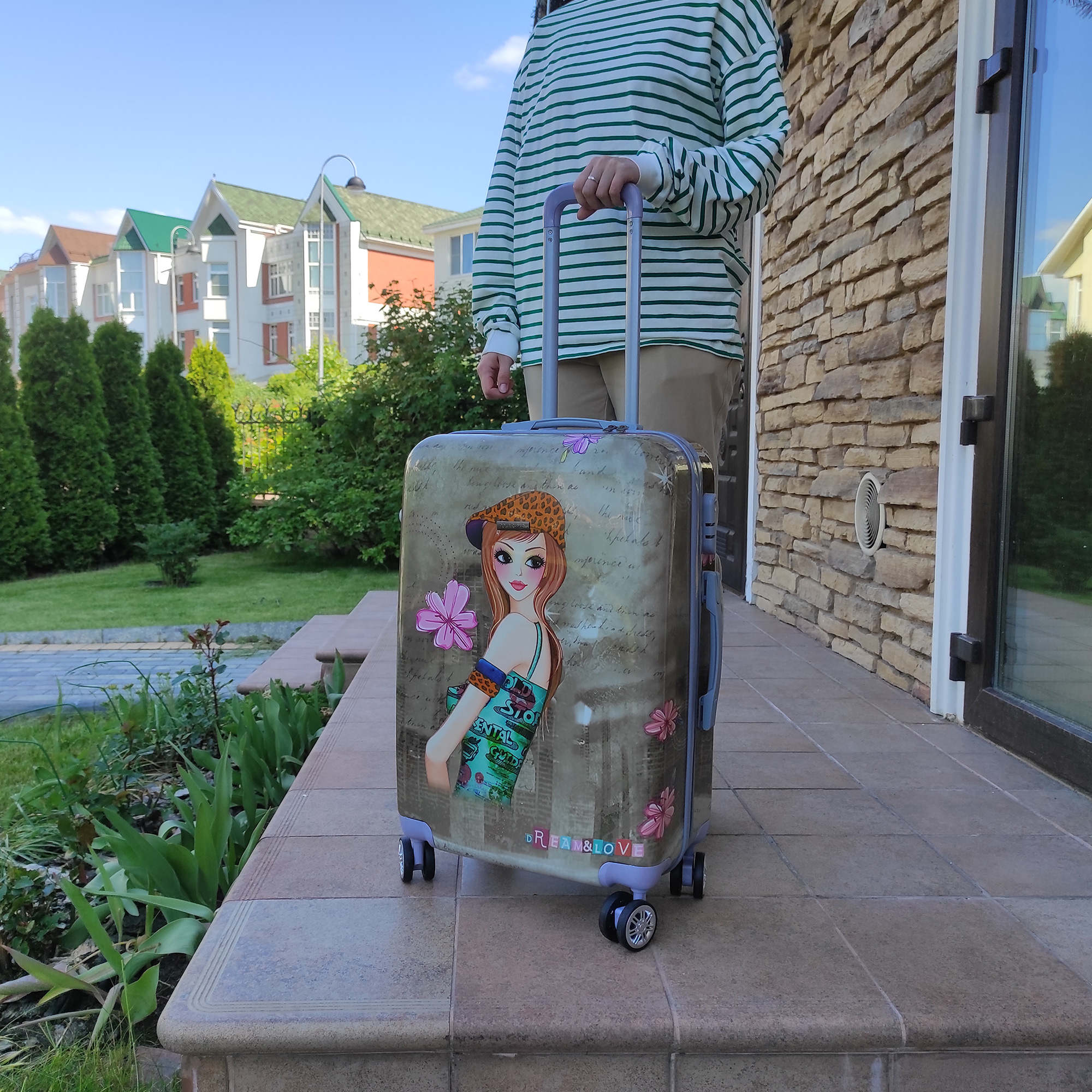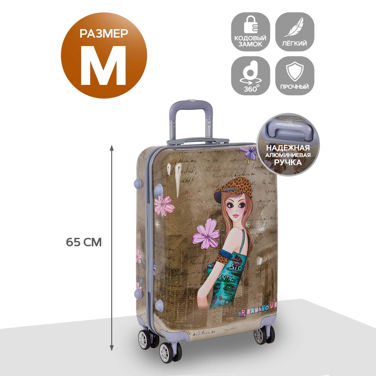 Чемодан фирмы POLAR, выполнен из ABS-пластика. Основное отделение разделено на две части. Одно имеет фиксирующие ремни, второе на молнии. Выдвигающаяся ручка расположена внутри корпуса чемодана, что способствует большей прочности и защите от ударов при разгрузке/погрузке чемодана. Выдвигающаяся ручка фиксируется в двух положениях. Есть кодовый замок. Надежные 4 колеса диаметром 4.8 см.