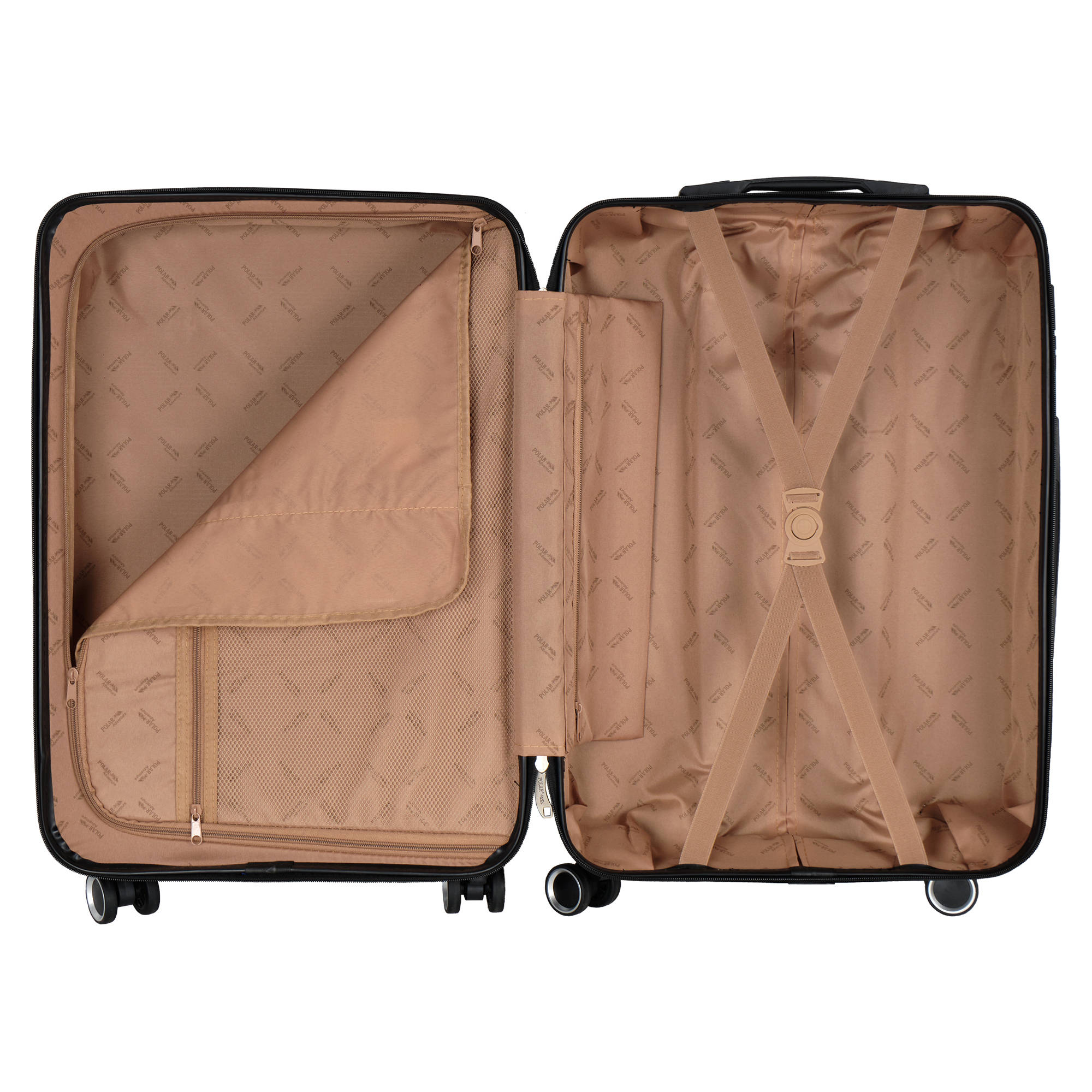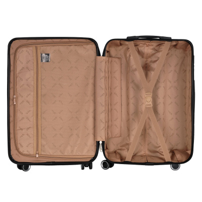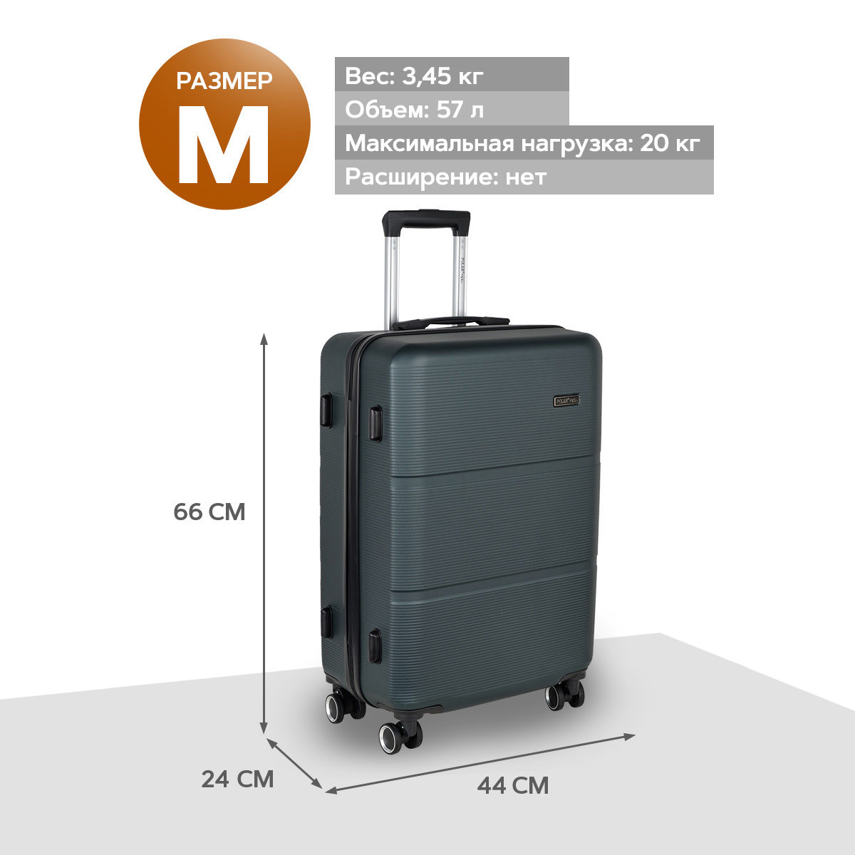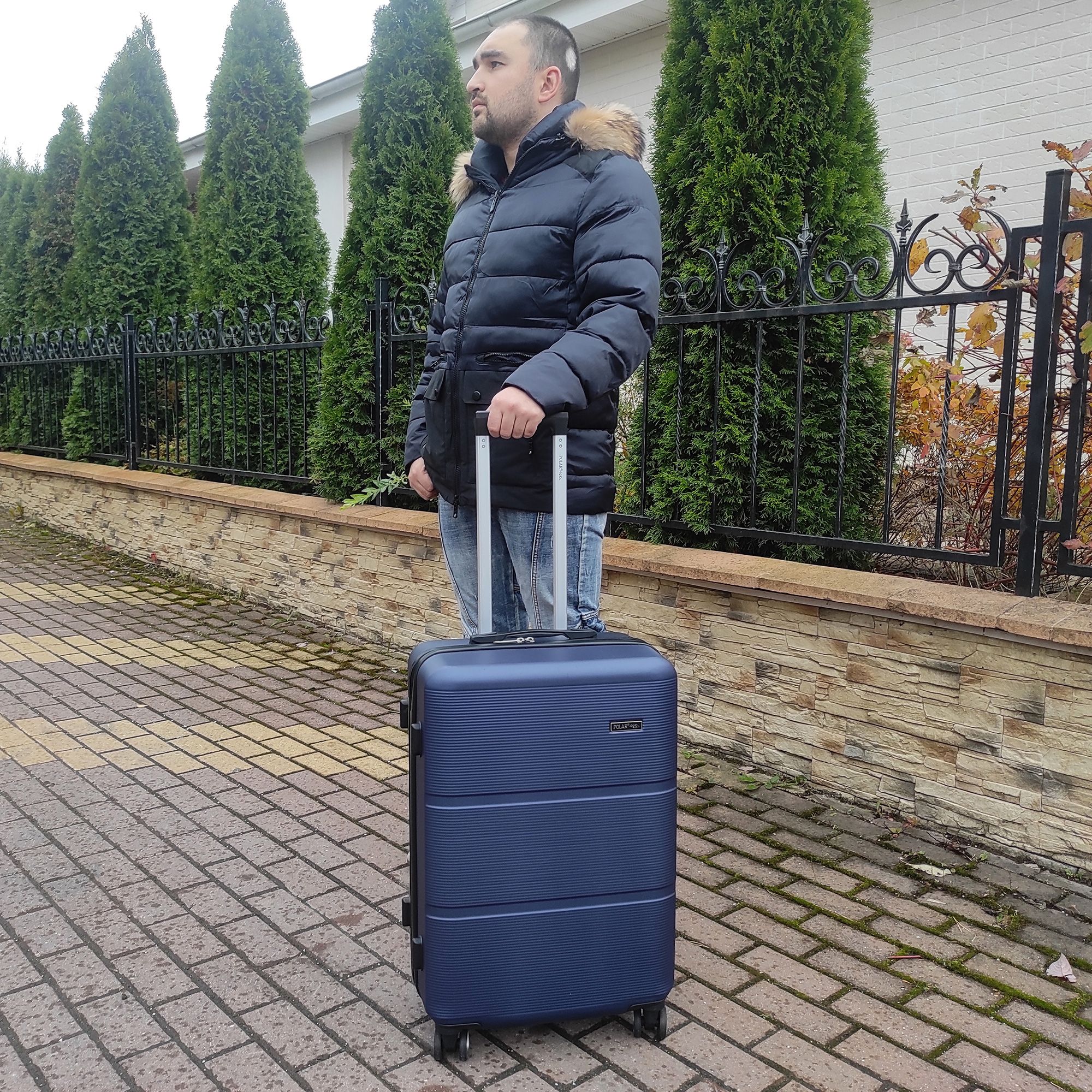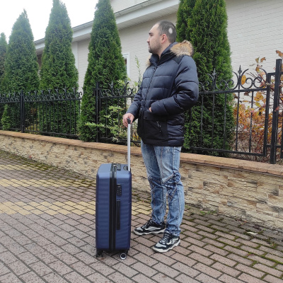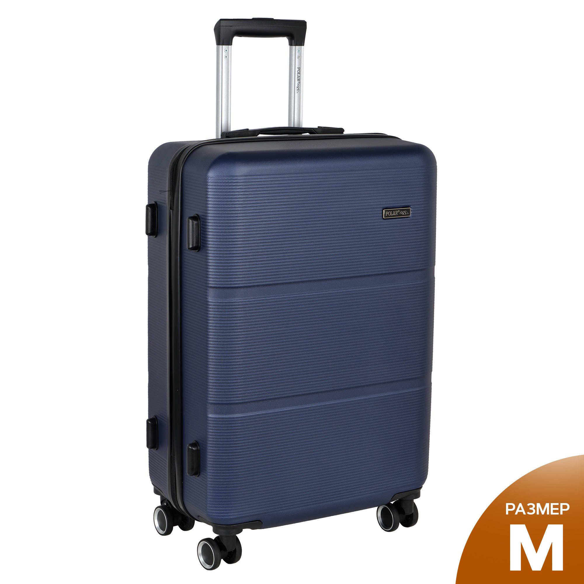 Чемодан фирмы POLAR, размер М, выполнен из пластик ABS. Основное отделение разделено на две части. Одно имеет фиксирующие ремни, второе на молнии. Выдвигающаяся ручка расположена внутри корпуса чемодана, что способствует большей прочности и защите от ударов при разгрузке/погрузке чемодана. Выдвигающаяся ручка фиксируется в двух положениях. Есть кодовый замок. Надежные 4 колеса.