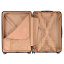 Чемодан на четырех прорезиненных колесиках. Чемодан выполнен из нового легкого материал PC (Поликарбонат). В отличие от ABS-пластика чемоданы из PC можно эксплуатировать при очень низких температурах. PC (Поликарбонат) обладает высокой прочностью, эластичностью и высокой ударостойкостью. Особенностью чемоданов из PC (Поликарбонат) является малый вес. Внутри подкладка из полиэстра. Одна секция чемодана с креплением резинками для одежды. Вторая секция застегивается на молнию для удобства упаковки вещей. Есть кодовый замок TSA.