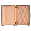 Чемодан на четырех прорезиненных колесиках. Чемодан выполнен из нового легкого материал PC (Поликарбонат). В отличие от ABS-пластика чемоданы из PC можно эксплуатировать при очень низких температурах. PC (Поликарбонат) обладает высокой прочностью, эластичностью и высокой ударостойкостью. Особенностью чемоданов из PC (Поликарбонат) является малый вес. Внутри подкладка из полиэстра. Одна секция чемодана с креплением резинками для одежды. Вторая секция застегивается на молнию для удобства упаковки вещей. Есть кодовый замок TSA.
