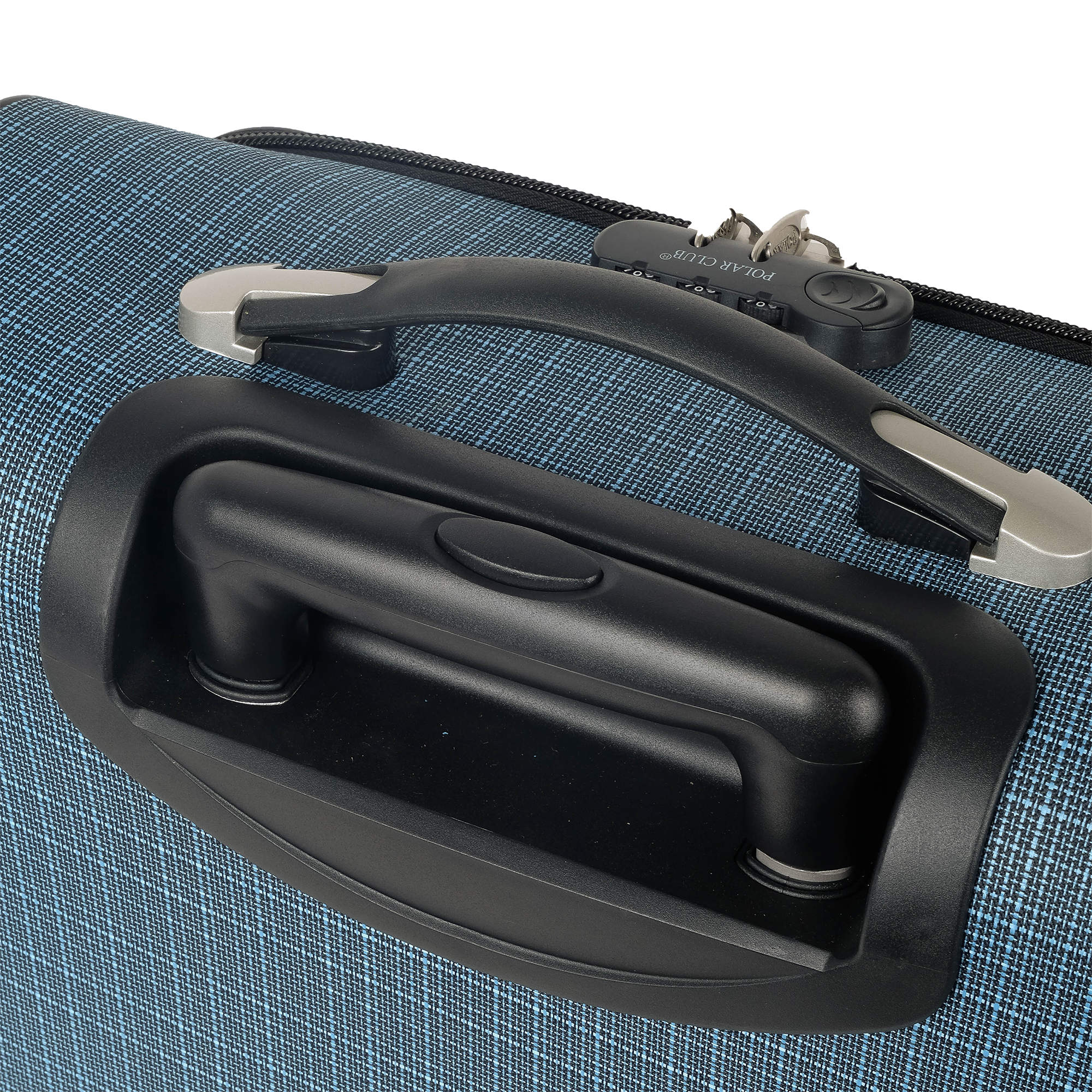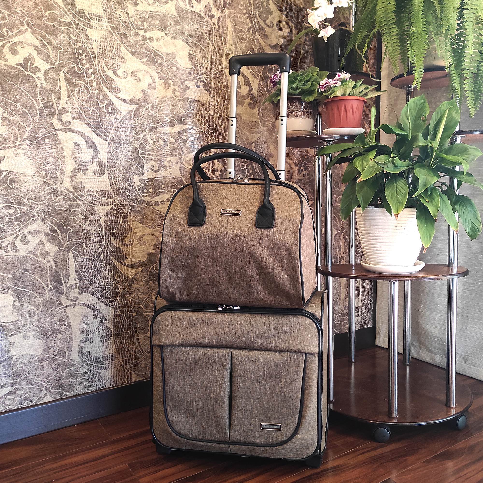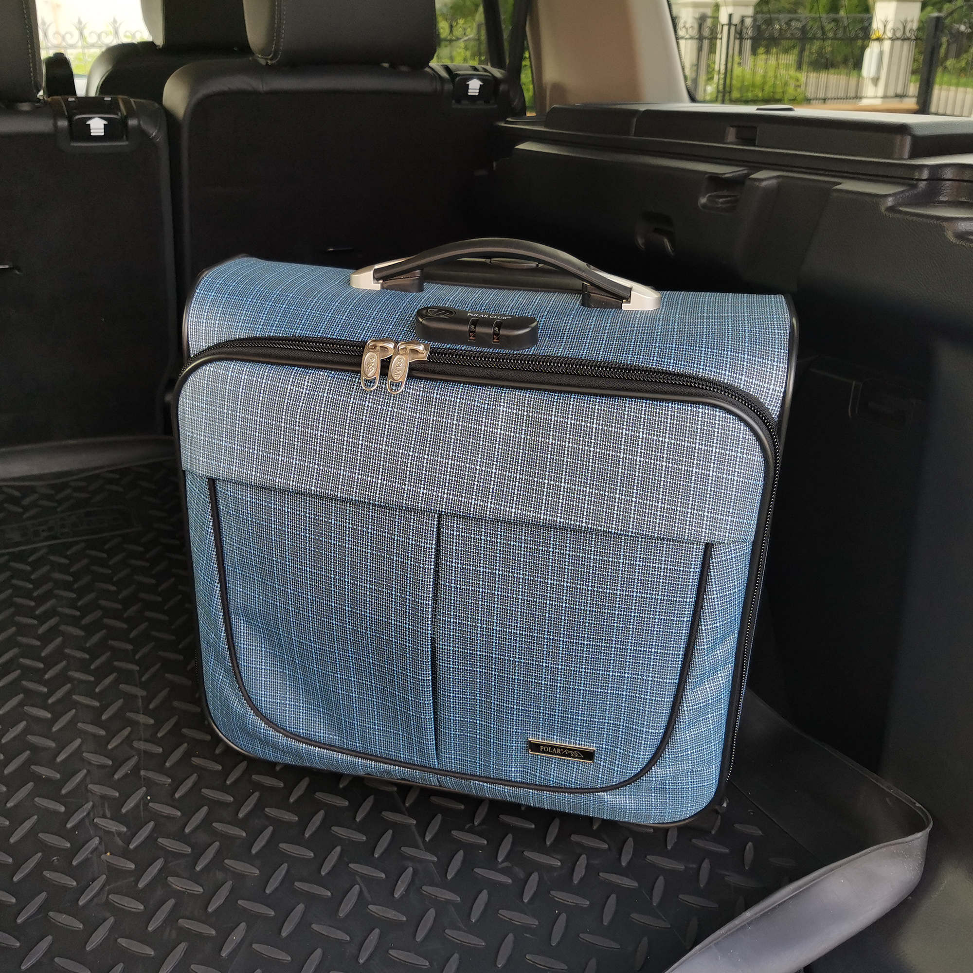 Чемодан от компании "Polar" на двух колёсах выполнен из прочного материала жаккарда. Подходит как ручная кладь. Чемодан закрывается на молнию, присутствует также встроенный кодовый замок.Внутри есть одно большое отделение , в котором присутствуют ремни для фиксации вещей. Снаружи расположен объёмный карман на молнии для мелких вещей. У чемодана есть небольшая ручка для переноски и металлическая ручка, которая выдвигается на 67 см.