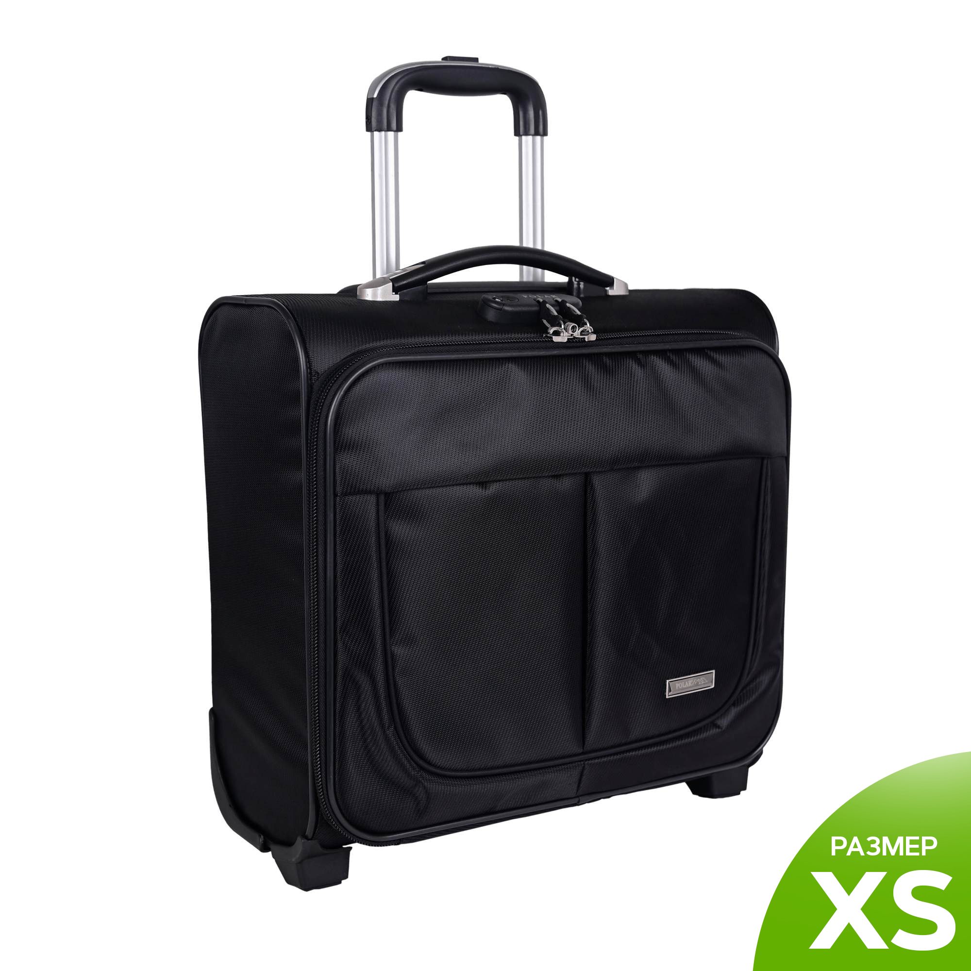 Чемодан от компании "Polar" на двух колёсах выполнен из прочного материала жаккарда. Подходит как ручная кладь. Чемодан закрывается на молнию, присутствует также встроенный кодовый замок.Внутри есть одно большое отделение , в котором присутствуют ремни для фиксации вещей. Снаружи расположен объёмный карман на молнии для мелких вещей. У чемодана есть небольшая ручка для переноски и металлическая ручка, которая выдвигается на 67 см.