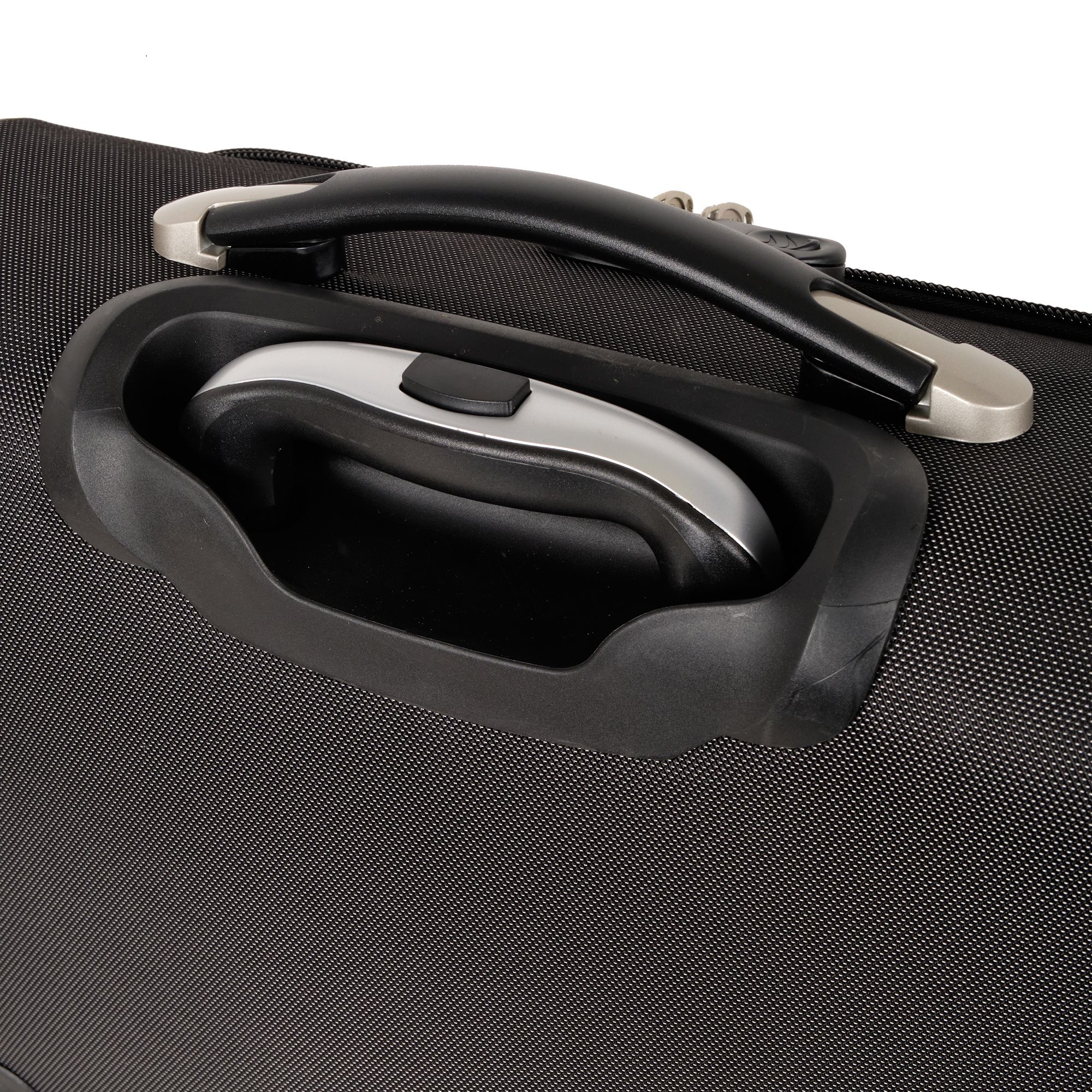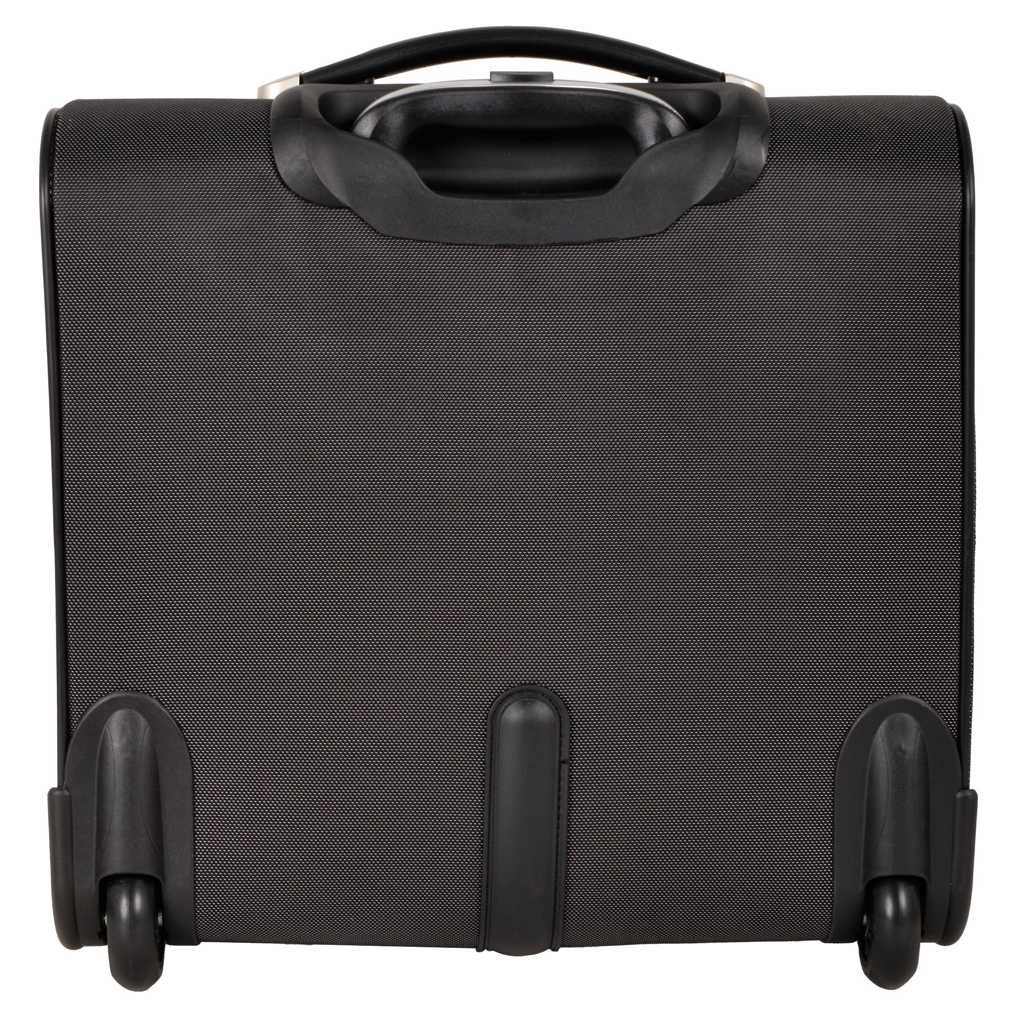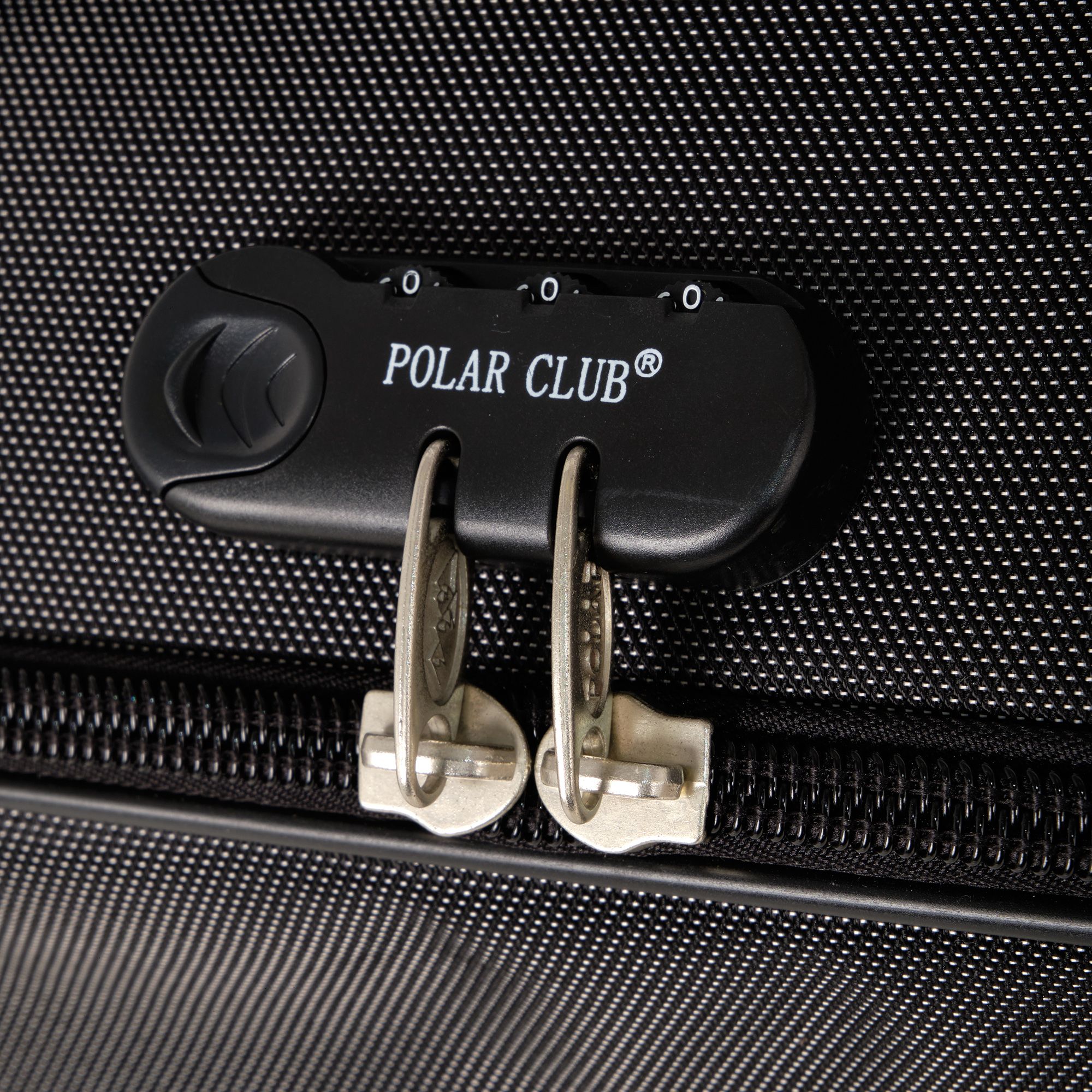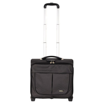 Чемодан от компании "Polar" на двух колёсах выполнен из прочного материала (нейлона и полиэстера). Подходит как ручная кладь. Чемодан закрывается на молнию, присутствует также встроенный кодовый замок.Внутри есть одно большое отделение , в котором присутствуют ремни для фиксации вещей, отделение для ноутбука и маленький карман на молнии для документов. Снаружи расположен объёмный карман на молнии для мелких вещей. У чемодана есть небольшая ручка для переноски и металлическая ручка, которая выдвигается на 67 см..