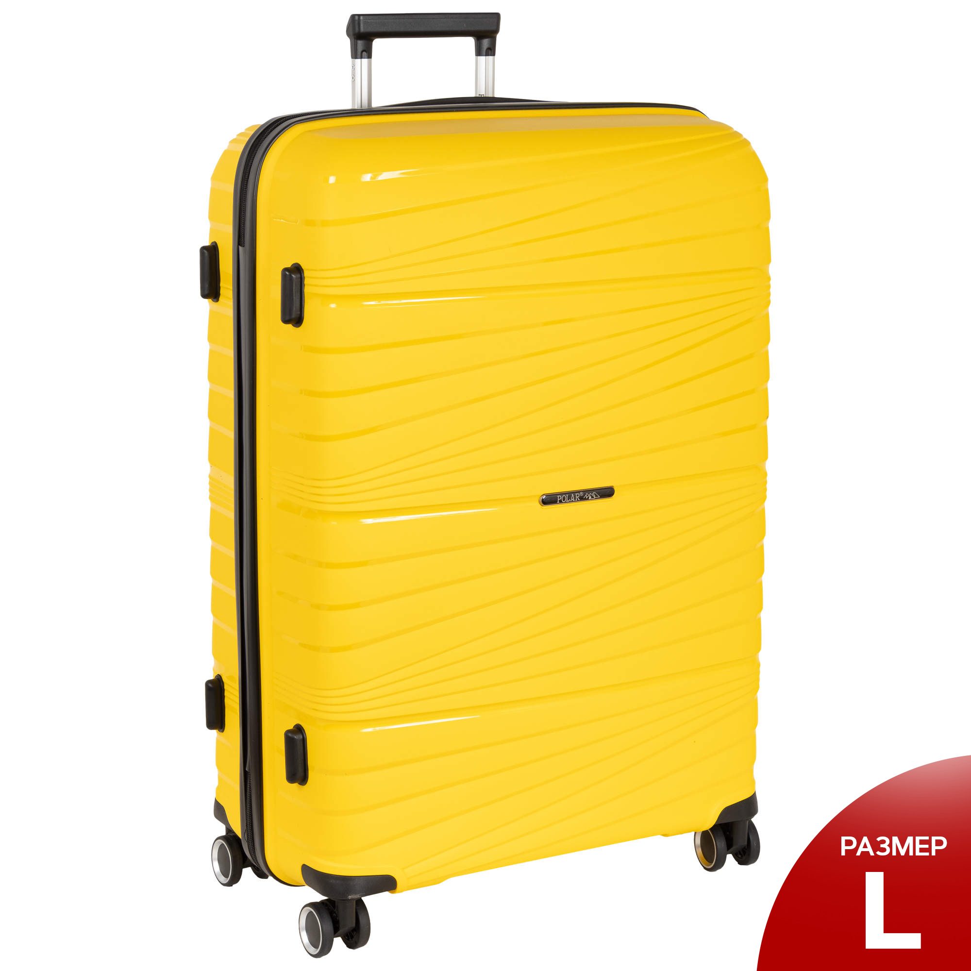 Чемодан фирмы POLAR, размер L, выполнен из PP (полипропилен). Основное отделение разделено на две части. Одно имеет фиксирующие ремни, второе на молнии. Выдвигающаяся ручка расположена внутри корпуса чемодана, что способствует большей прочности и защите от ударов при разгрузке/погрузке чемодана. Выдвигающаяся ручка фиксируется в двух положениях. Есть кодовый замок. Надежные 4 колеса.