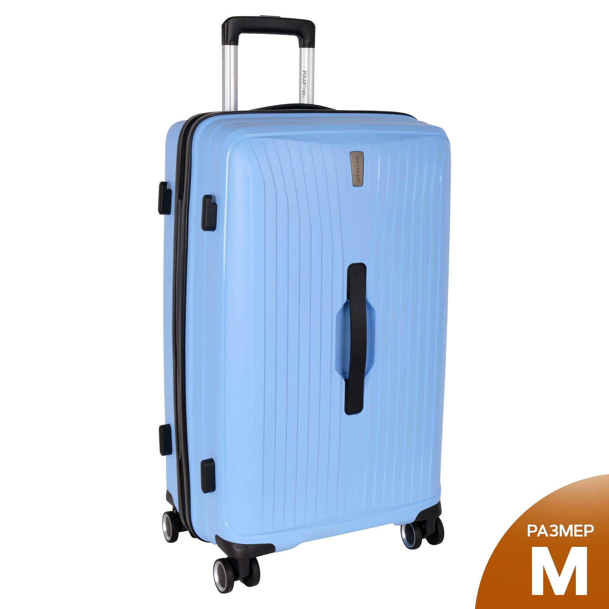Чемодан малый фирмы POLAR, размер М, выполнен из PP (полипропилен). Основное отделение разделено на две части. Одно имеет фиксирующие ремни, второе на молнии. Выдвигающаяся ручка расположена внутри корпуса чемодана, что способствует большей прочности и защите от ударов при разгрузке/погрузке чемодана. Выдвигающаяся ручка фиксируется в трех положениях. Есть кодовый замок. Надежные 4 колеса.
