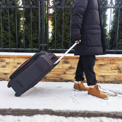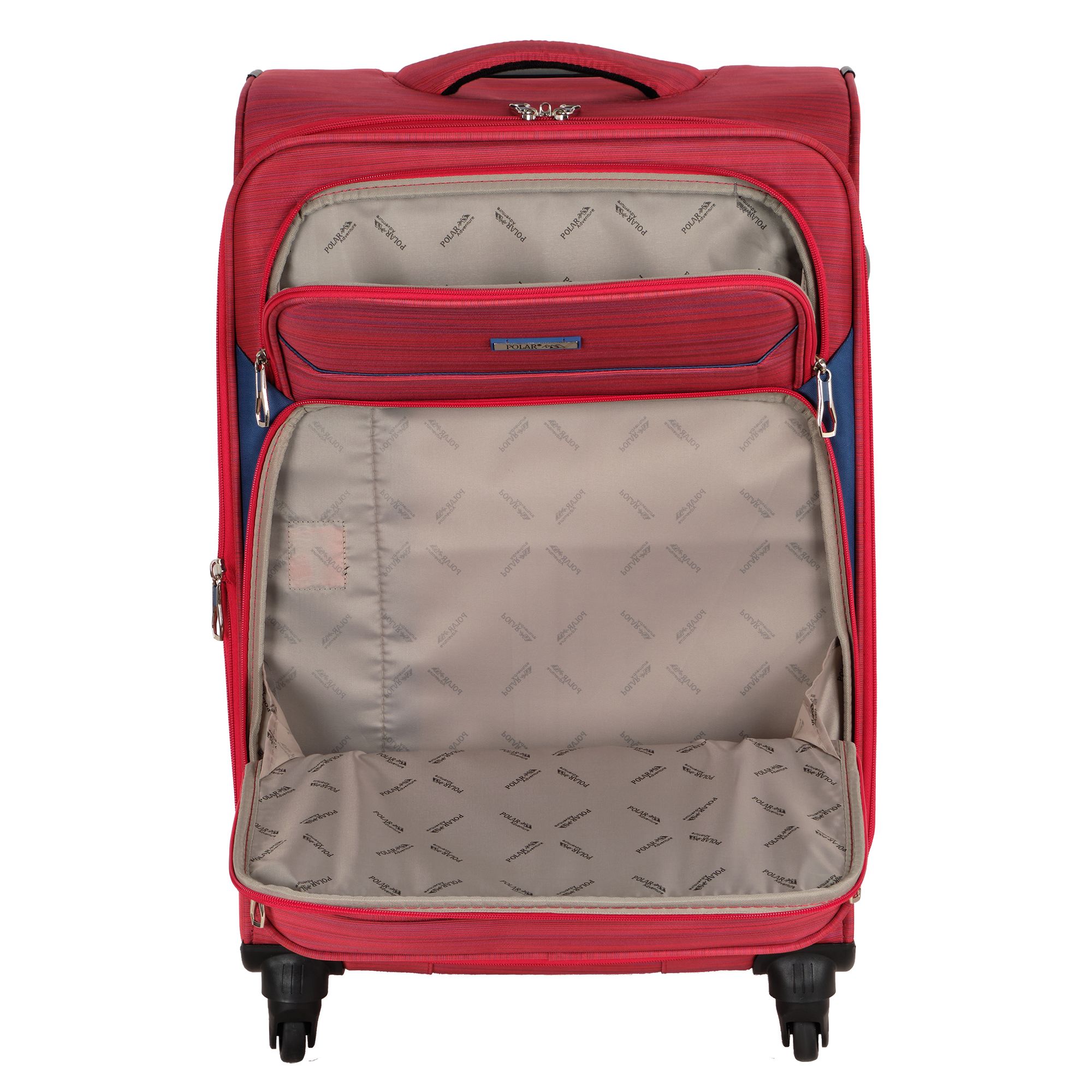 Суперлегкий четырёхколёсный чемодан POLAR. Основное отделение чемодана закрывается на молнию. Впереди два кармана и боковой карман на молнии. Чемодан раздвигается на 5 см. Максимальный объем при увеличении 76.5 л.. Четырёхколёсный чемодан более маневренный и удобный по сравнению с двухколёсным - 4 колеса вращаются на 360 градусов.