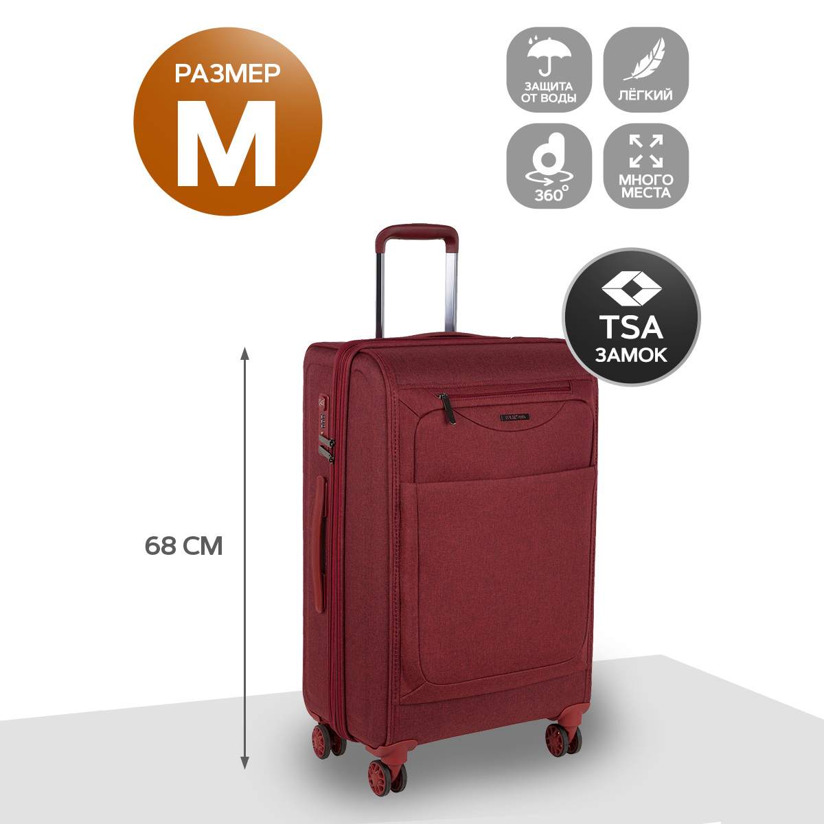 Дополнительно: Боковая ручка, Кодовый замок, Функция tsa, Колёса 360°, Расширение объема.