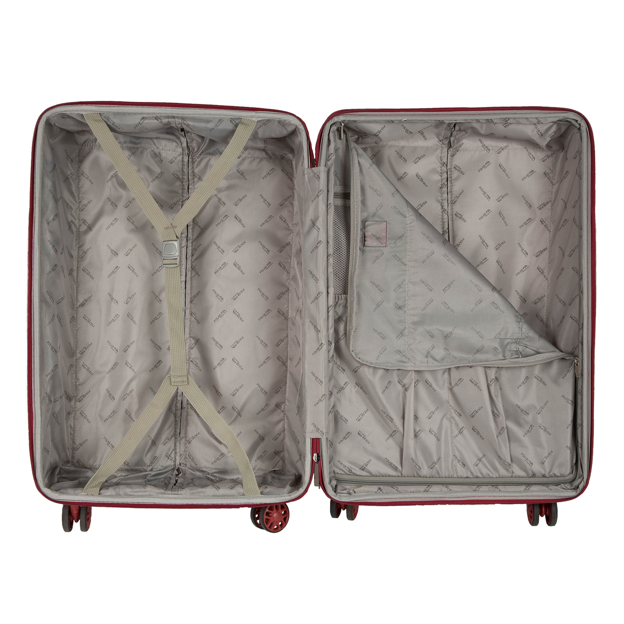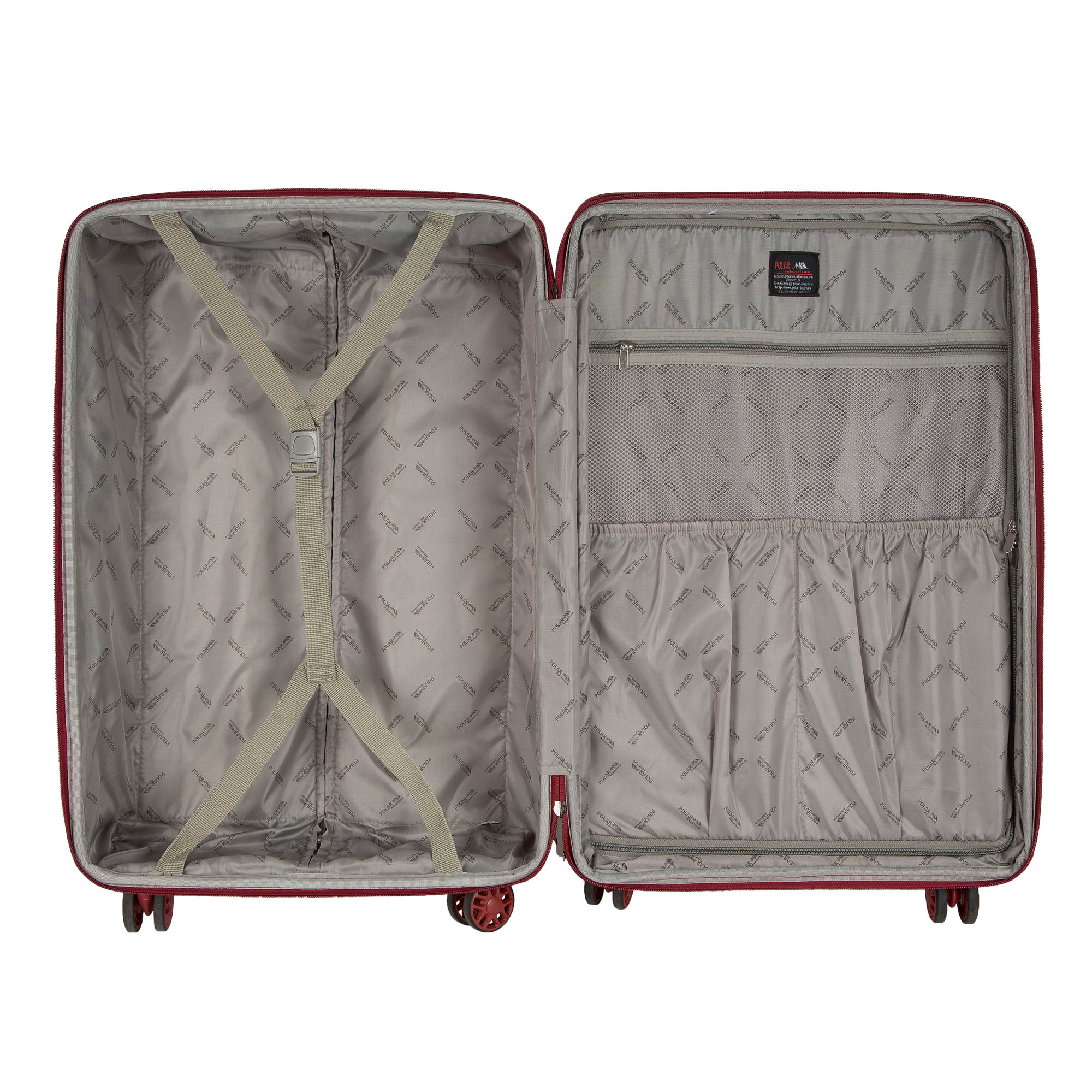 Суперлегкий четырёхколёсный чемодан POLAR. На лицевой стороне чемодана большой карман и карман для мелких вещей на молнии. Основное отделение чемодана разделено на две части. Одна на молнии, вторая с крепежным ремнем.