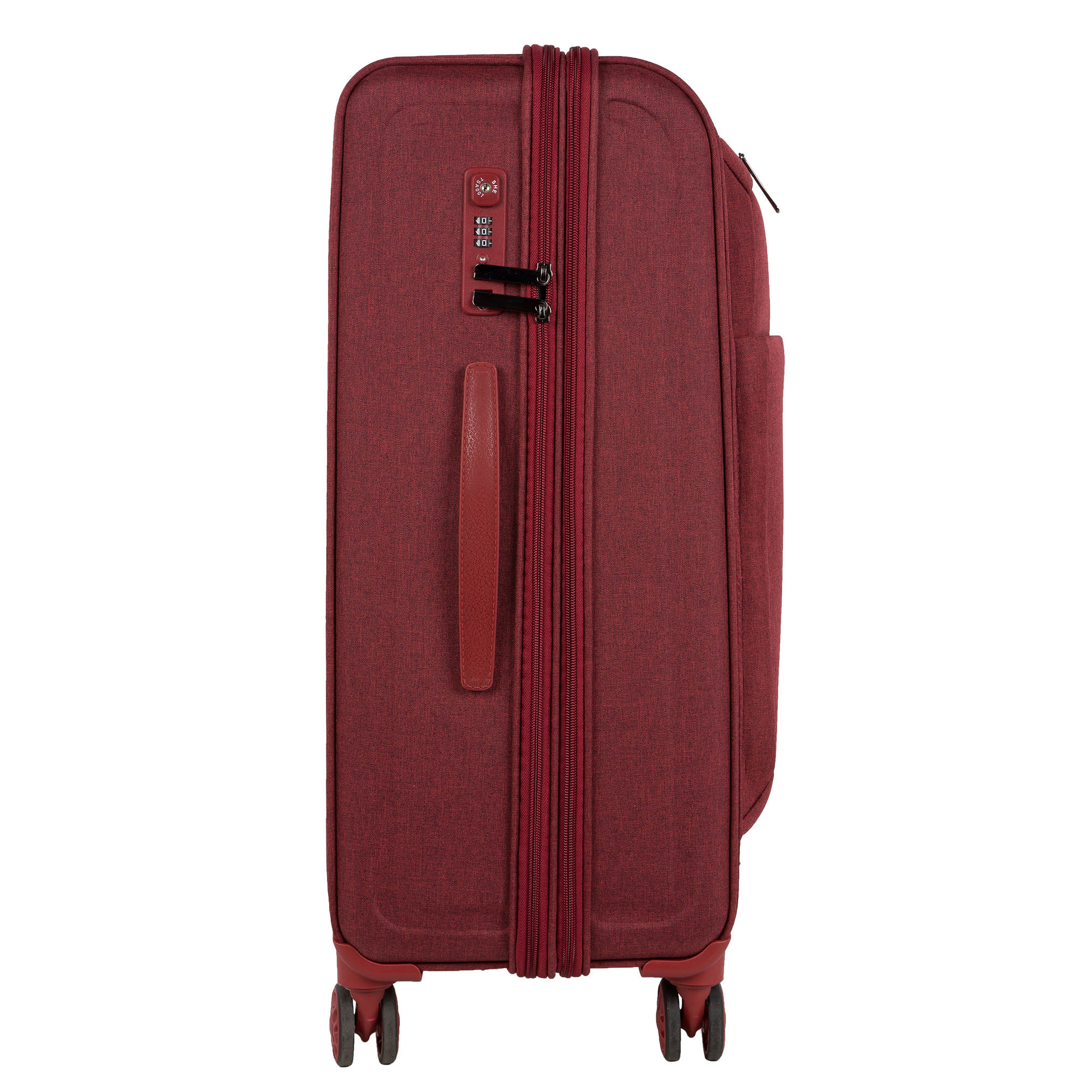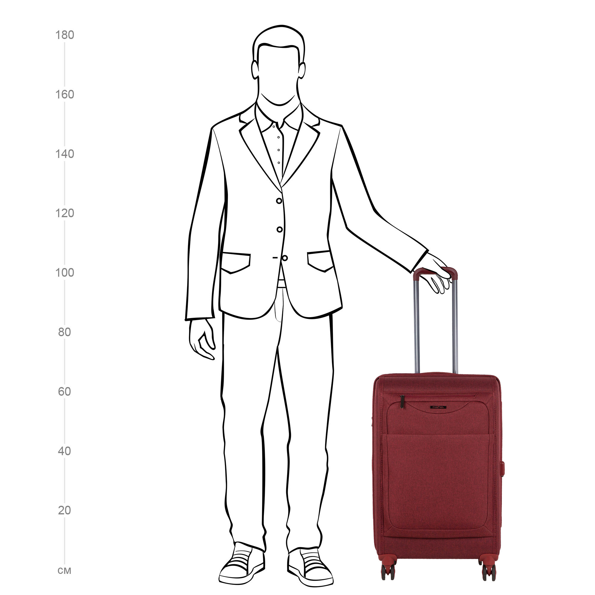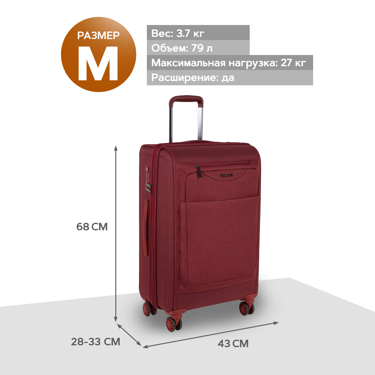 Чемодан расширяется в объеме на 4 см. В комплект входит кодовый замок с таможенной системой TSA.