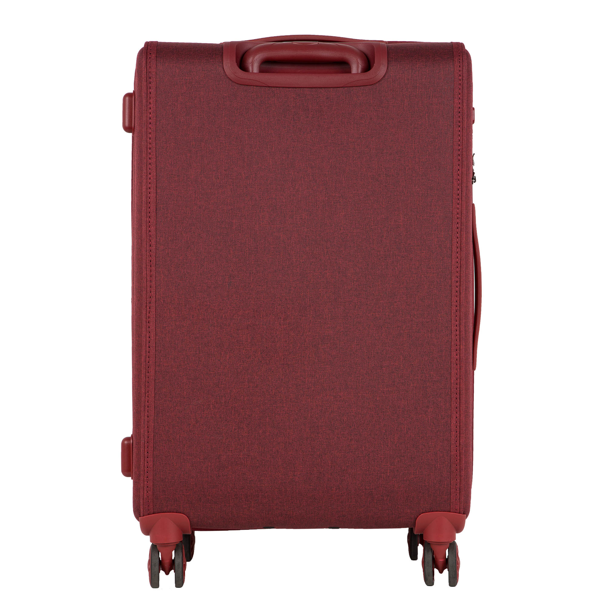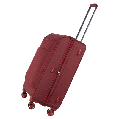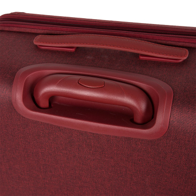 Чемодан имеет полностью пластиковый корпус, дублированный плотной тканью. Благодаря чему не царапается и не колется. Имеет в наличии ручку для переноски сверху чемодана, а также выдвижную ручку, максимальная высота которой составляет 106 см. Выдвижная ручка защищена пластиковой стенкой, обшитой тканью и укрепленной ППЭ.
