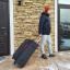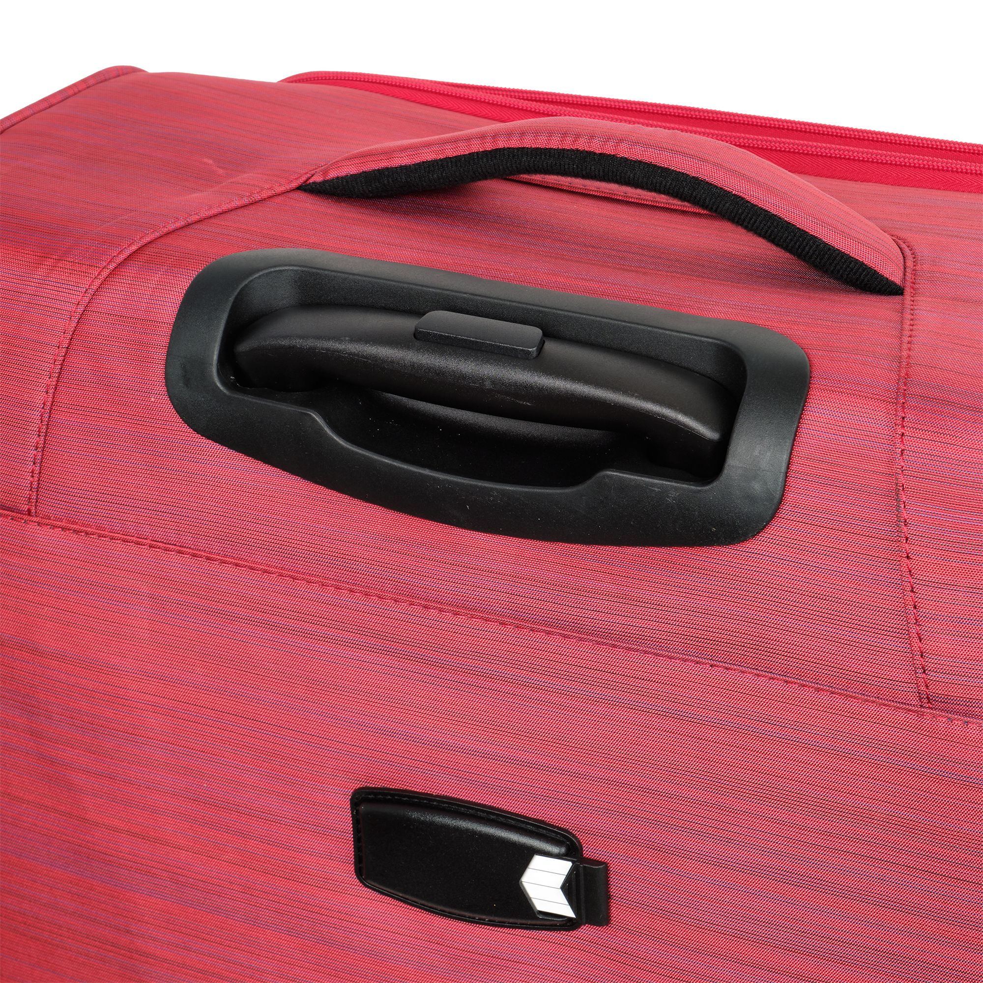 Стильный чемодан модной расцветки имеет в наличии две ручки для переноски сбоку и сверху чемодана, а также выдвижную ручку, максимальная высота которой составляет 30 см.