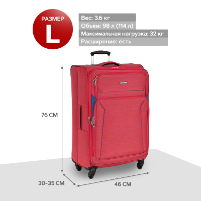 Суперлегкий четырёхколёсный чемодан POLAR. Основное отделение чемодана закрывается на молнию. Впереди два кармана и боковой карман на молнии. Чемодан раздвигается на 5 см. Максимальный объем при увеличении 114 л.. Четырёхколёсный чемодан более маневренный и удобный по сравнению с двухколёсным - 4 колеса вращаются на 360 градусов.