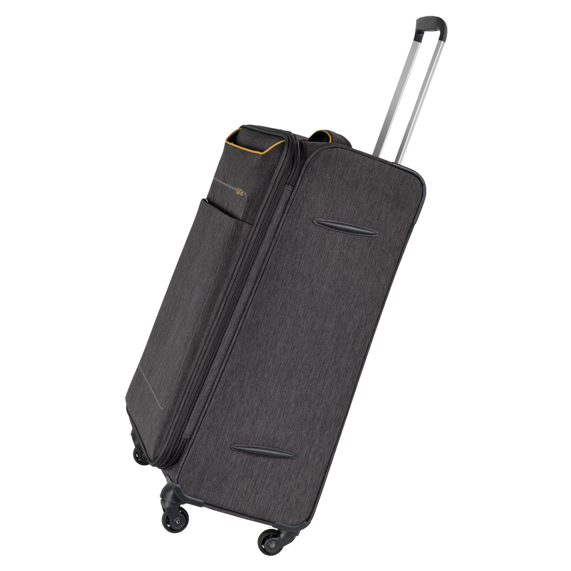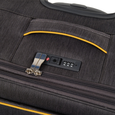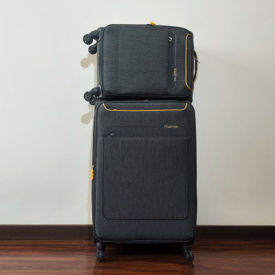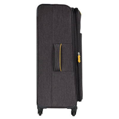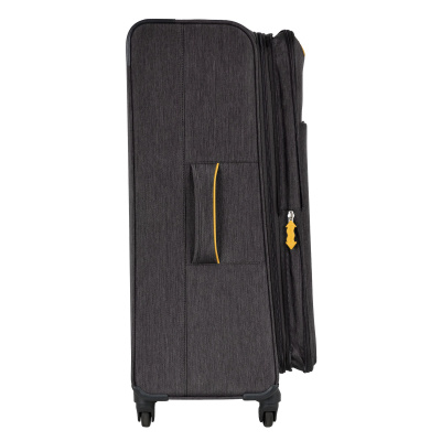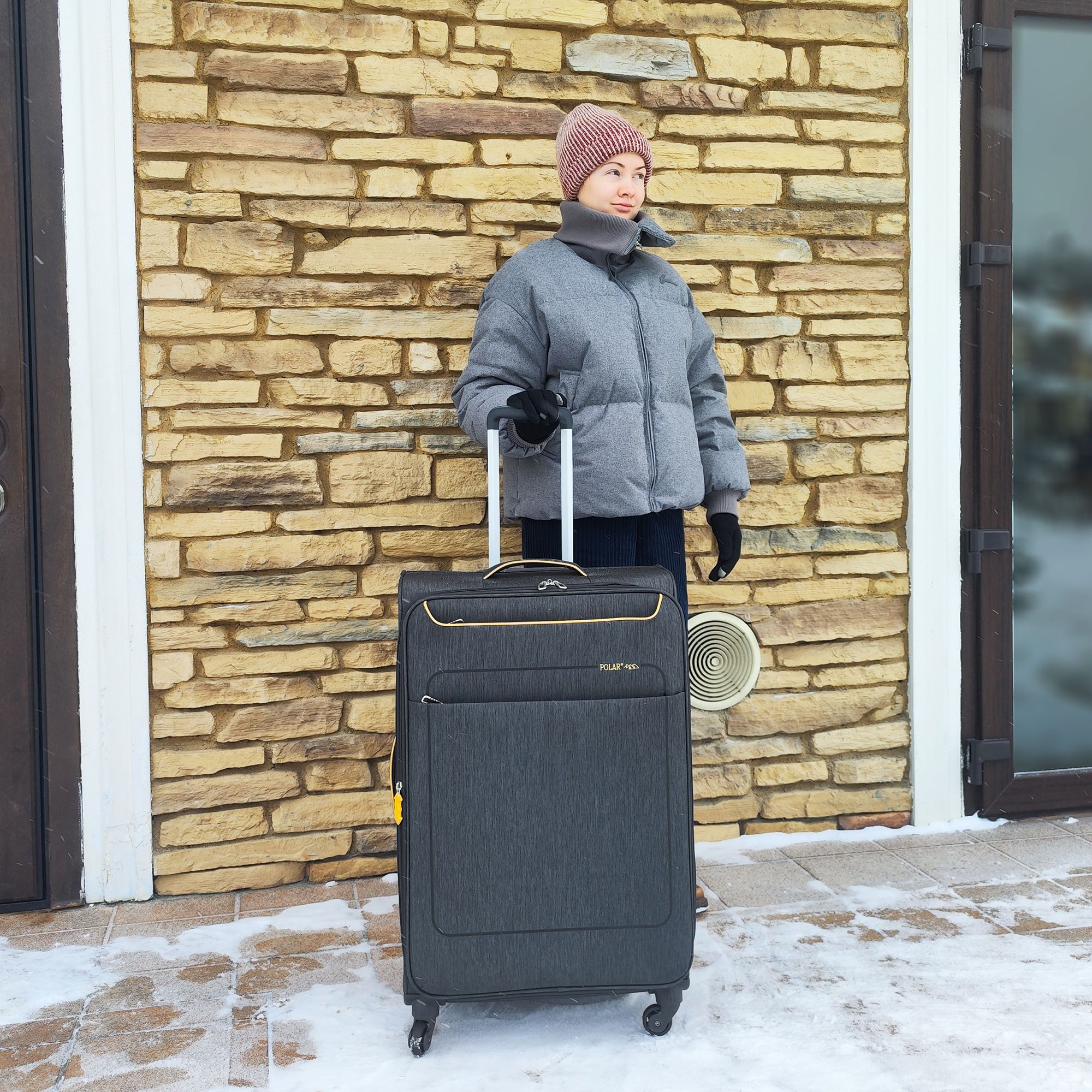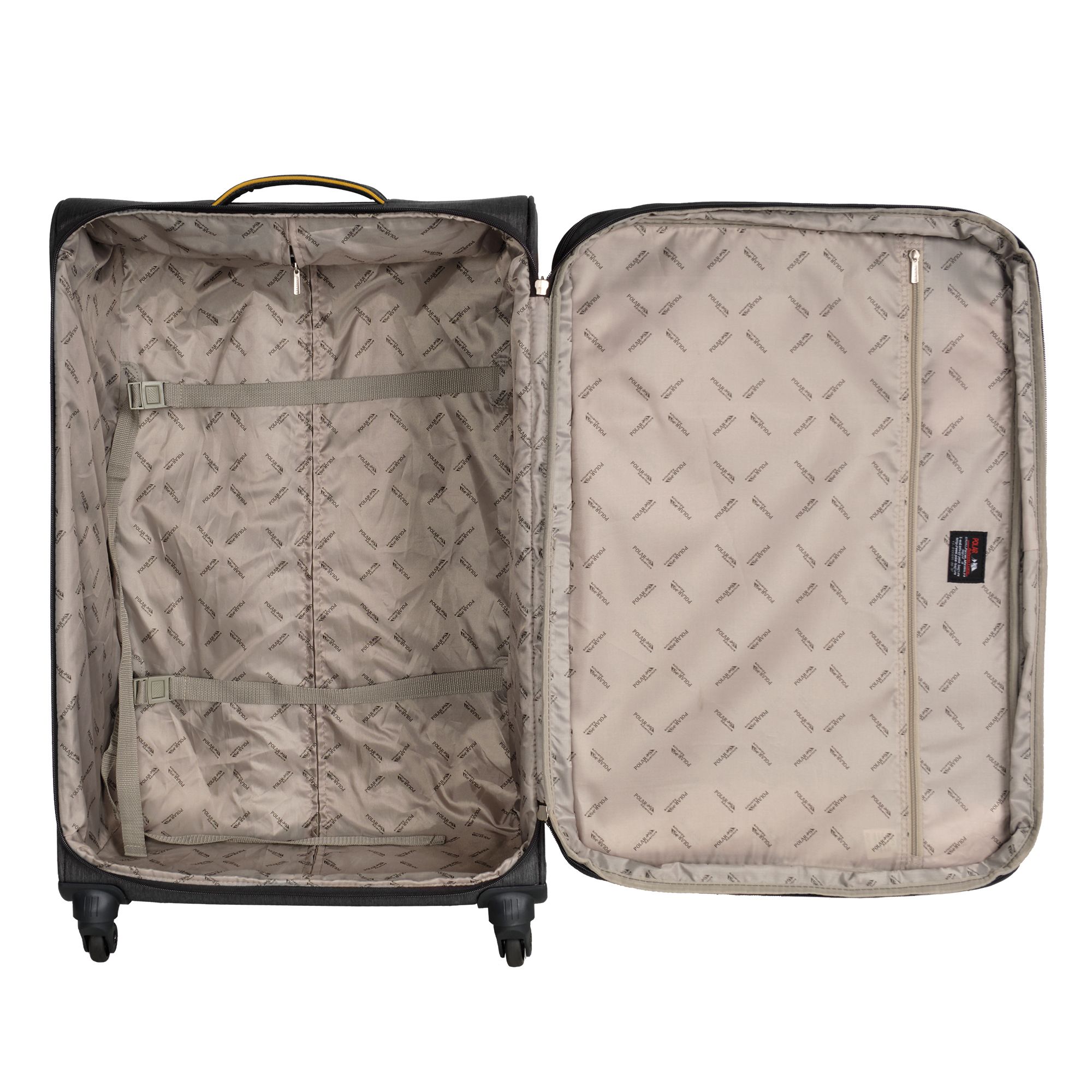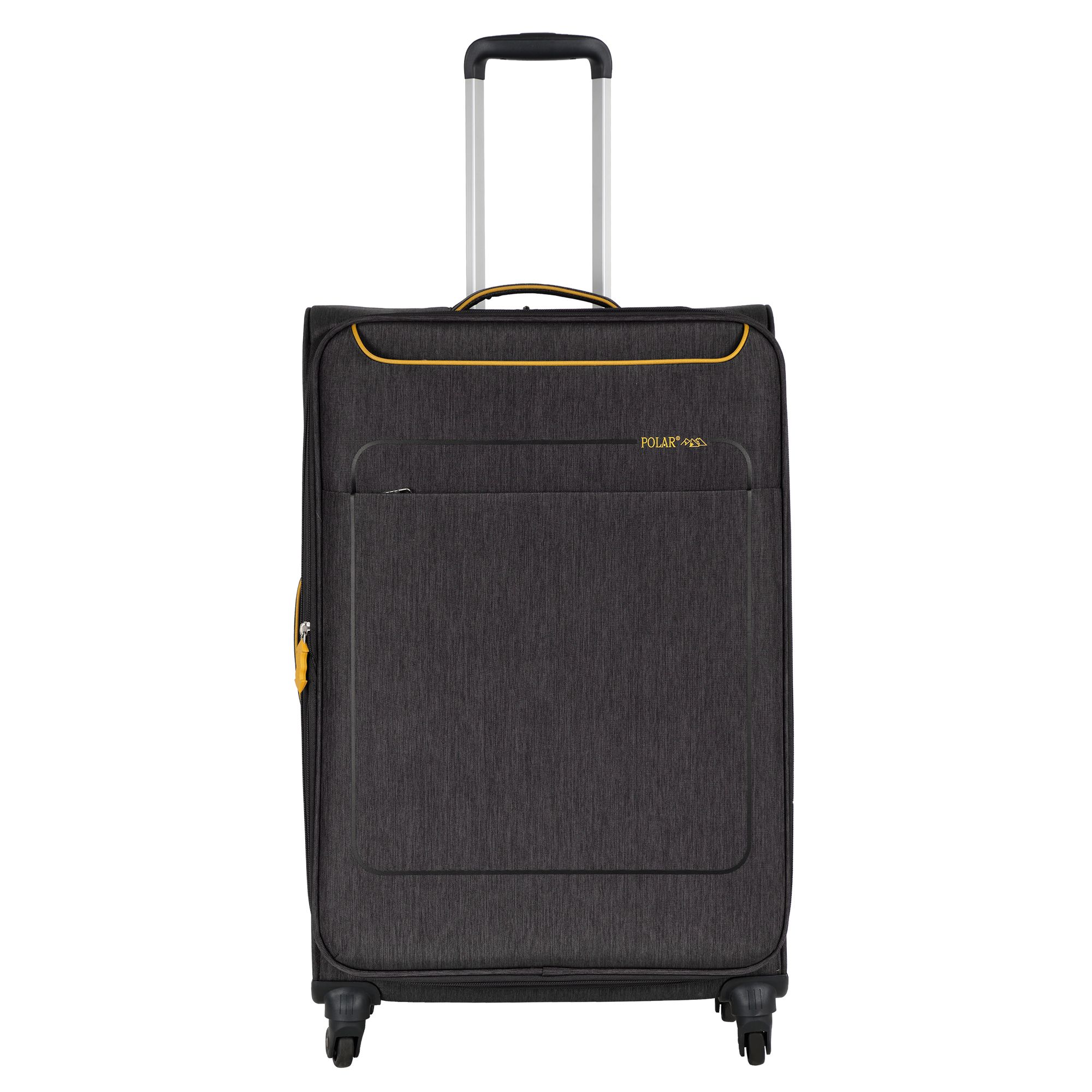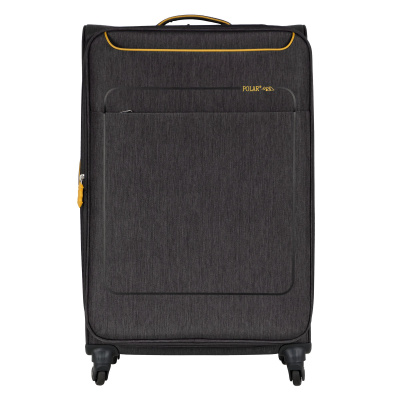 Большой чемодан фирмы Polar. Внутри имеются фиксирующие ремни и карман на молнии. Основное отделение можно увеличить в объеме, расстегнув молнию, при этом чемодан увеличивается в глубину на 5 см. Максимальный объем при увеличении 114 л.. Ручка выдвигается в два сложения до 30 см, Ручка расположена внутри корпуса чемодана, что способствует ее защите при погрузке чемодана. Снаружи на передней стенке — два больших кармана на молнии. Надежные четыре колеса на подшипниках, вращаются на 360° градусов. У чемодана встроенный TSA кодовый замок.