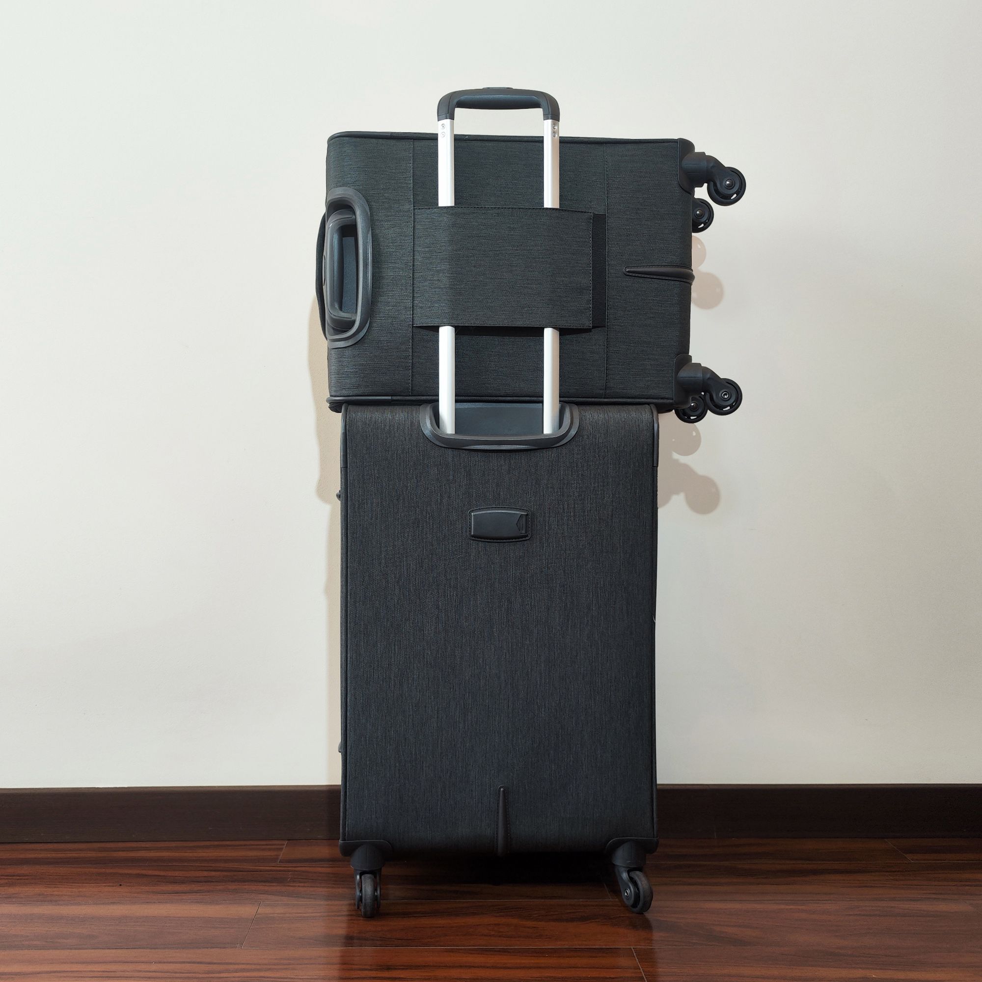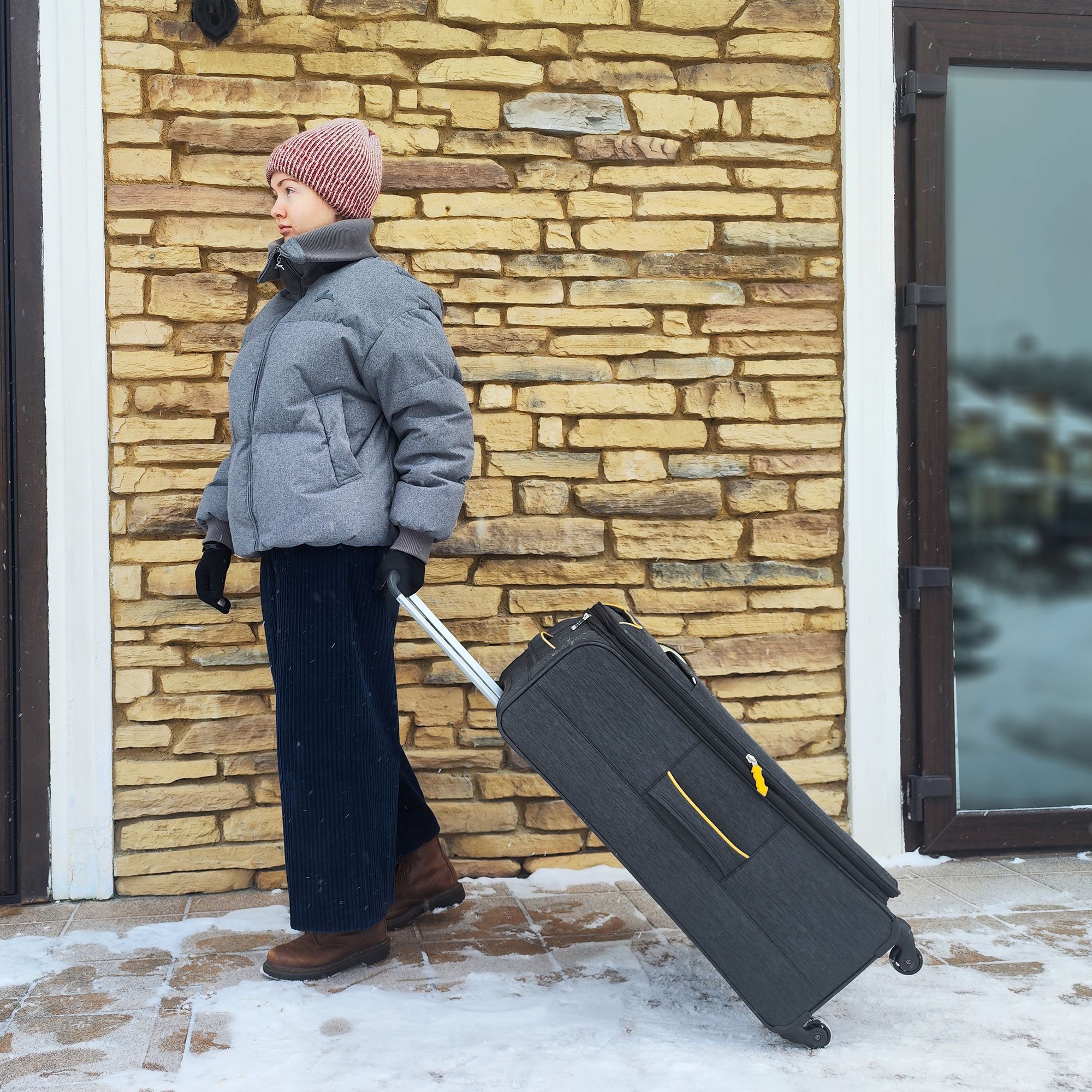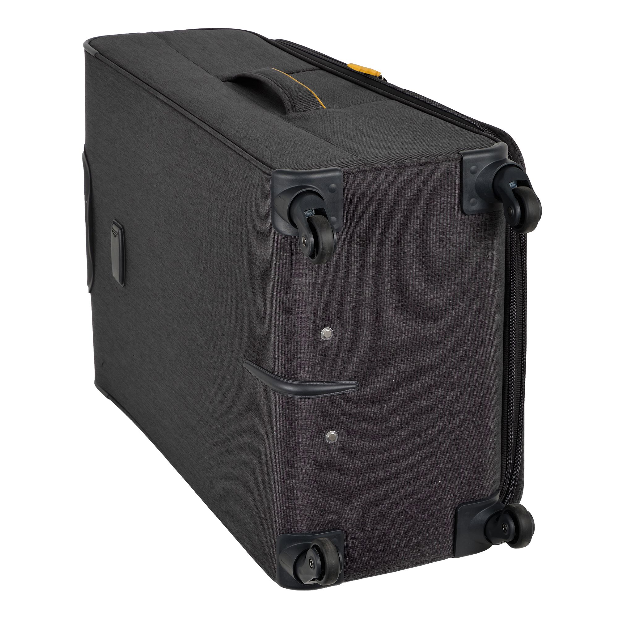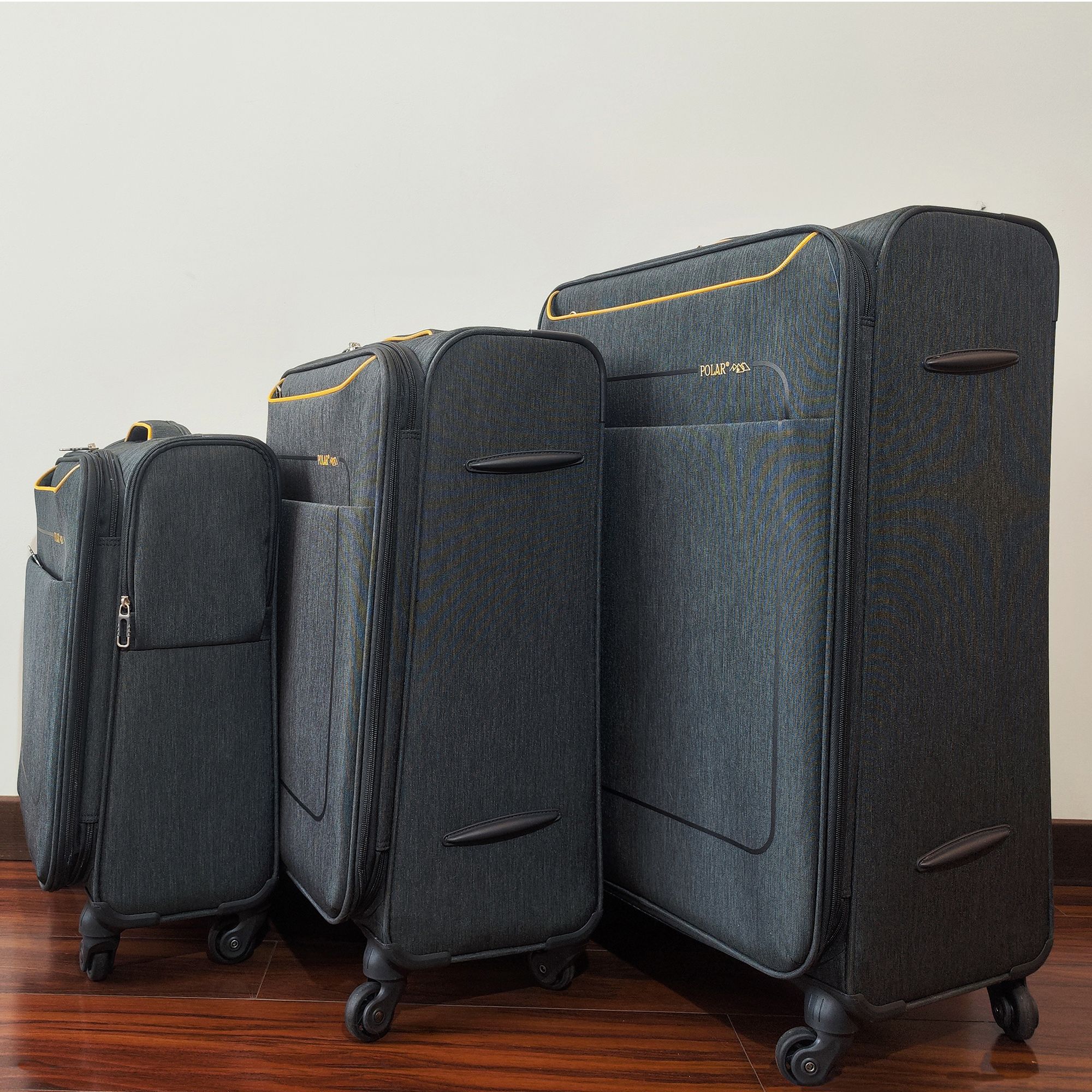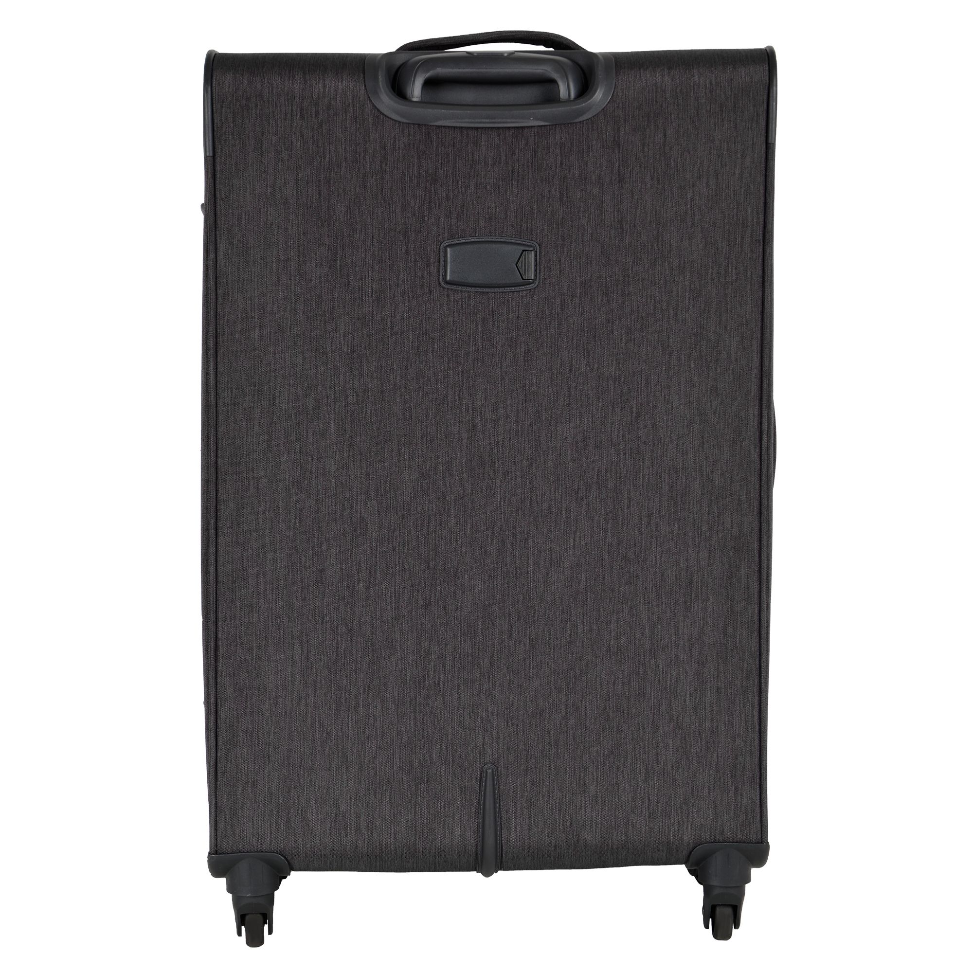 Большой чемодан фирмы Polar. Внутри имеются фиксирующие ремни и карман на молнии. Основное отделение можно увеличить в объеме, расстегнув молнию, при этом чемодан увеличивается в глубину на 5 см. Максимальный объем при увеличении 114 л.. Ручка выдвигается в два сложения до 30 см, Ручка расположена внутри корпуса чемодана, что способствует ее защите при погрузке чемодана. Снаружи на передней стенке — два больших кармана на молнии. Надежные четыре колеса на подшипниках, вращаются на 360° градусов. У чемодана встроенный TSA кодовый замок.