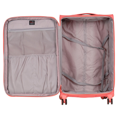 Суперлегкий чемодан POLAR выполнен из плотного водоотталкивающего полиэстера, устойчивого к загрязнениям.Чемодан закрывается по периметру на двухстороннюю молнию. Сверху удобная ручка, есть боковая ручка. Бесшумные и прочные двойные вращающиеся колеса 360 градусов для легкого перемещения и хорошей балансировки. Встроенный кодовый замок TSA, снаружи на передней стенке вместительный карман на молнии. Выдвижная ручка, максимальная высота которой составляет 105 см.