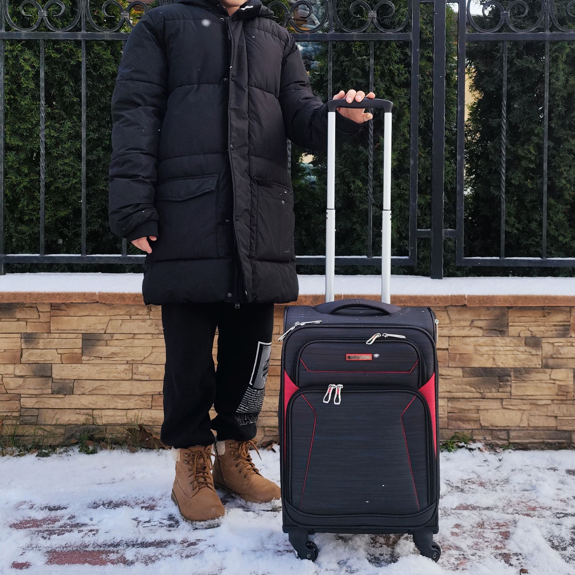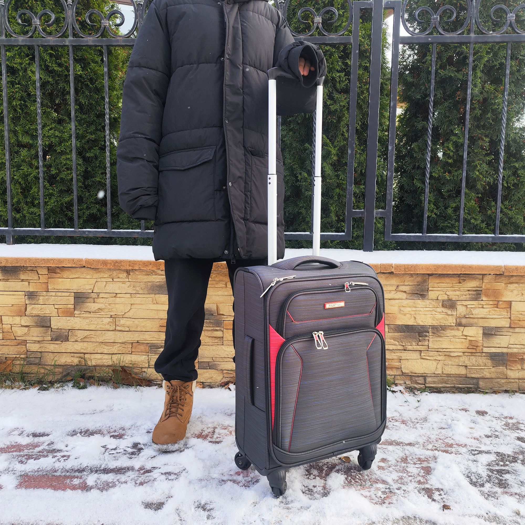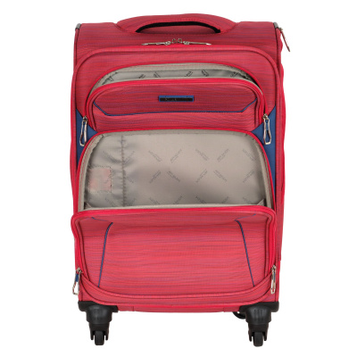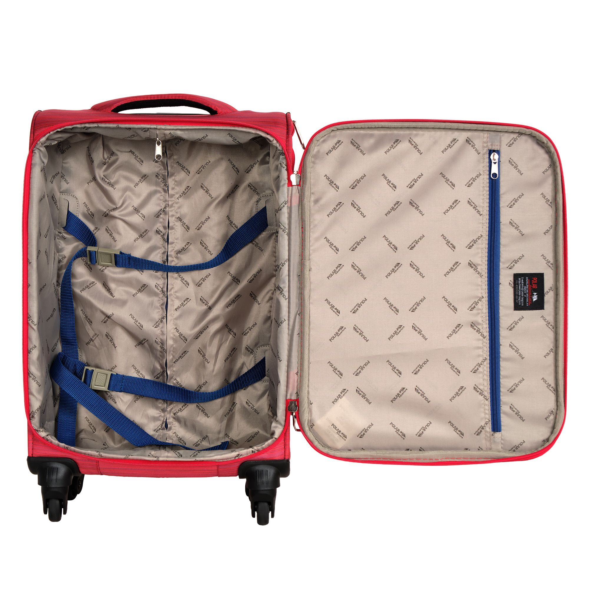 Суперлегкий четырёхколёсный чемодан POLAR. Основное отделение чемодана закрывается на молнию. Впереди два кармана и боковой карман на молнии. Четырёхколёсный чемодан более маневренный и удобный по сравнению с двухколёсным - 4 колеса вращаются на 360 градусов.