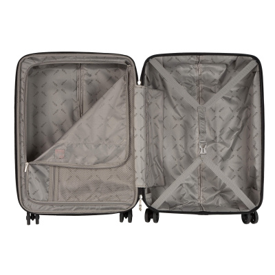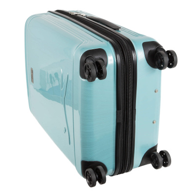 Средний пластиковый чемодан Спиннер 24". Основное отделение разделено на две части. Одно имеет фиксирующие ремни, второе на молнии. Выдвигающаяся ручка расположена внутри корпуса чемодана, что способствует большей прочности и защите от ударов при разгрузке/погрузке чемодана. Выдвигающаяся ручка фиксируется в двух положениях. Чемодан увеличивается в объеме за счет раздвижения молнии. Есть встроенный кодовый замок с таможенным ключом TSA. Надежные 4 колеса диаметром 4.8 см.