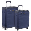 Комплект из двух суперлегкий четырёхколёсных чемоданов POLAR. Основное отделение чемодана закрывается на молнию. Впереди большой карман с отделением для ноутбука и маленький карман для документов.