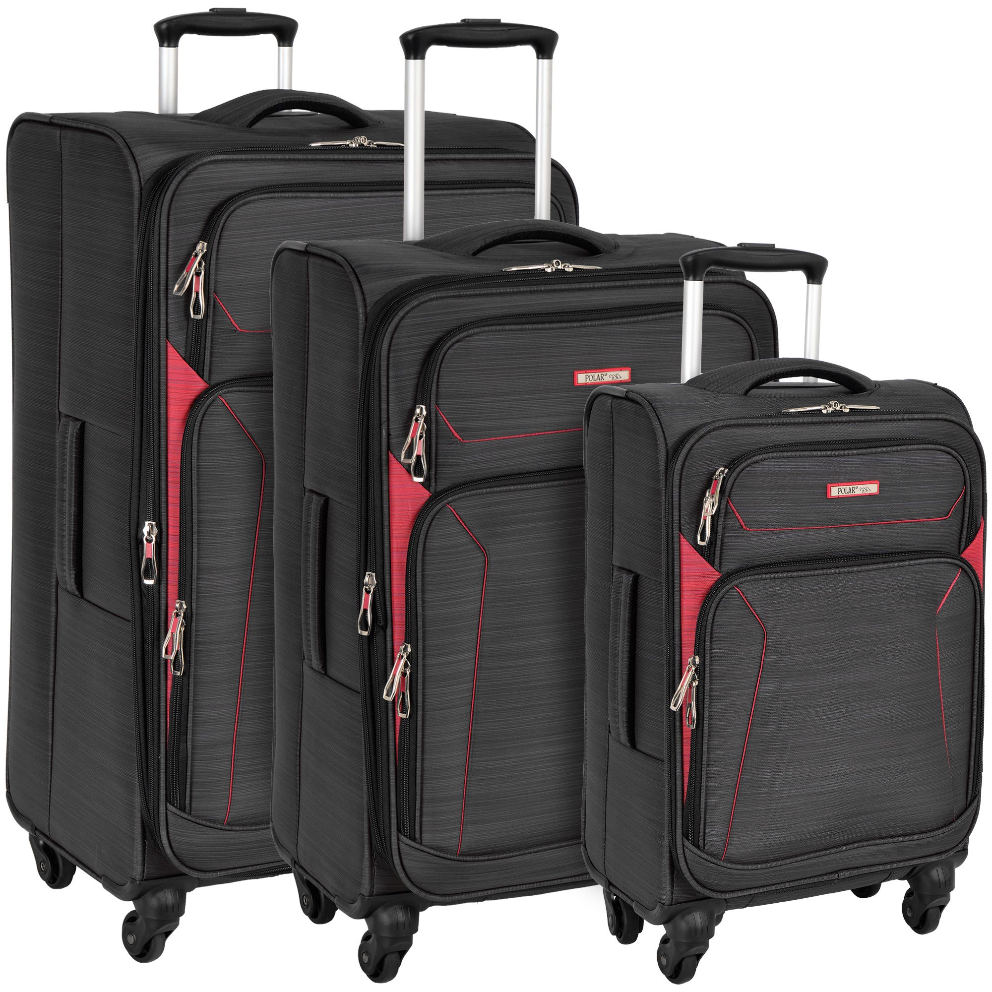 Комплект из трёх суперлегких четырёхколёсных чемоданов POLAR. Основное отделение чемоданов закрывается на молнию. Впереди два кармана и боковой карман на молнии. Четырёхколёсный чемодан более маневренный и удобный по сравнению с двухколёсным - 4 колеса вращаются на 360 градусов.