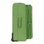 Два колеса с мягким полиуретановым покрытием и подшипниками наделяют чемодан тихим ходом.