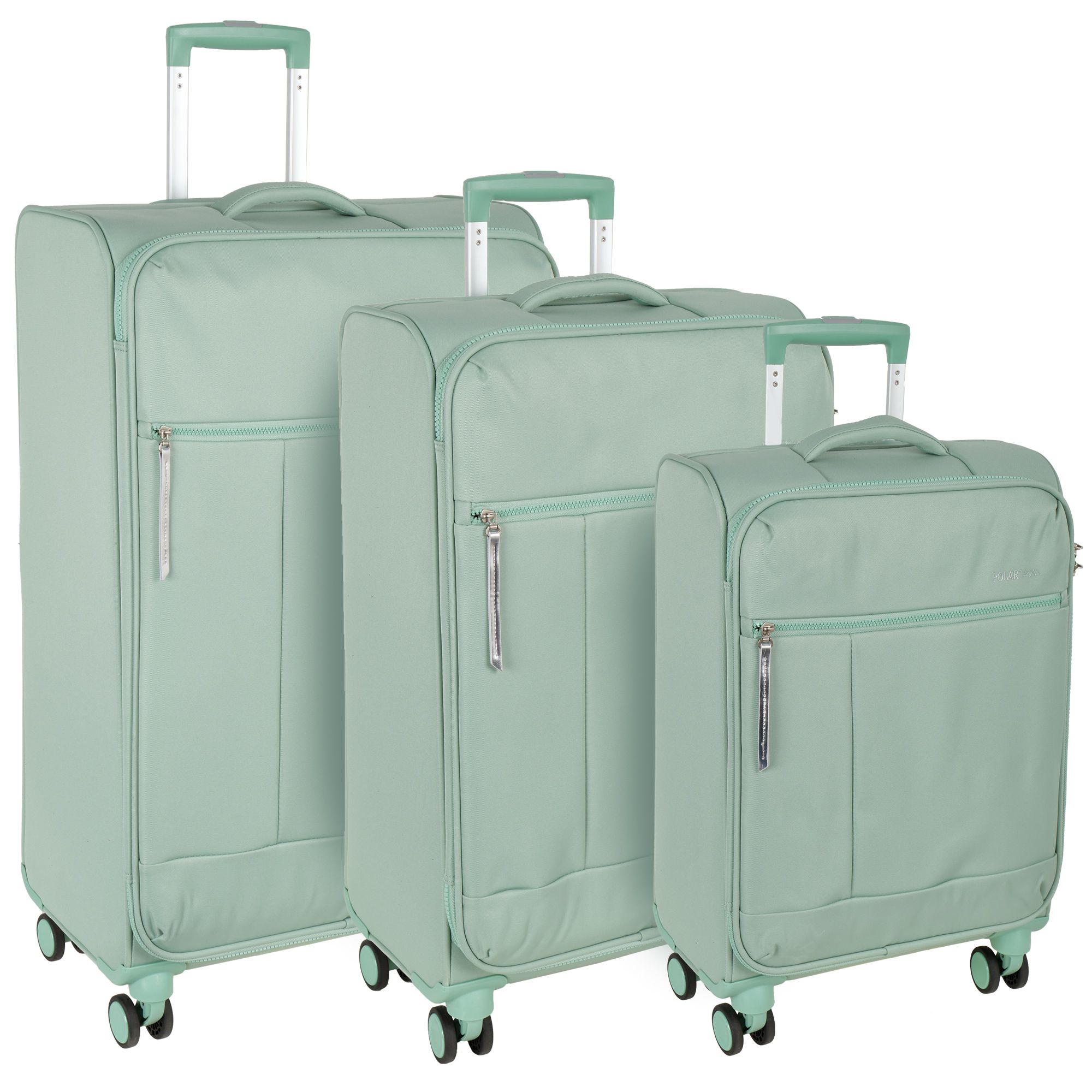 Комплект из трех облегченных чемоданов фирмы Polar с отделкой колес, тележки, молнии в цвете. Чемоданы закрываются по периметру на двухстороннюю широкую молнию. Сверху удобная ручка. Бесшумные и прочные двойные вращающиеся колеса 360 градусов для легкого перемещения и хорошей балансировки. Встроенный кодовый замок TSA, снаружи на передней стенке вместительный карман на молнии. Выдвижная ручка, максимальная высота которой составляет 105 см.