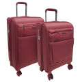 Комплект из 2-х Суперлегких и Суперпрочных чемоданов Спиннер 20", 24". Материал из чего сделаны чемоданы суперсовременная ткань дублированная на пластик. Основное отделение разделено на две части. Одно имеет фиксирующие ремни, второе на молнии. Выдвигающаяся ручка расположена внутри корпуса чемодана, что способствует большей прочности и защите от ударов при разгрузке/погрузке чемодана. Выдвигающаяся ручка фиксируется в двух положениях. Есть кодовый замок. Надежные 4 колеса диаметром 4.8 см.