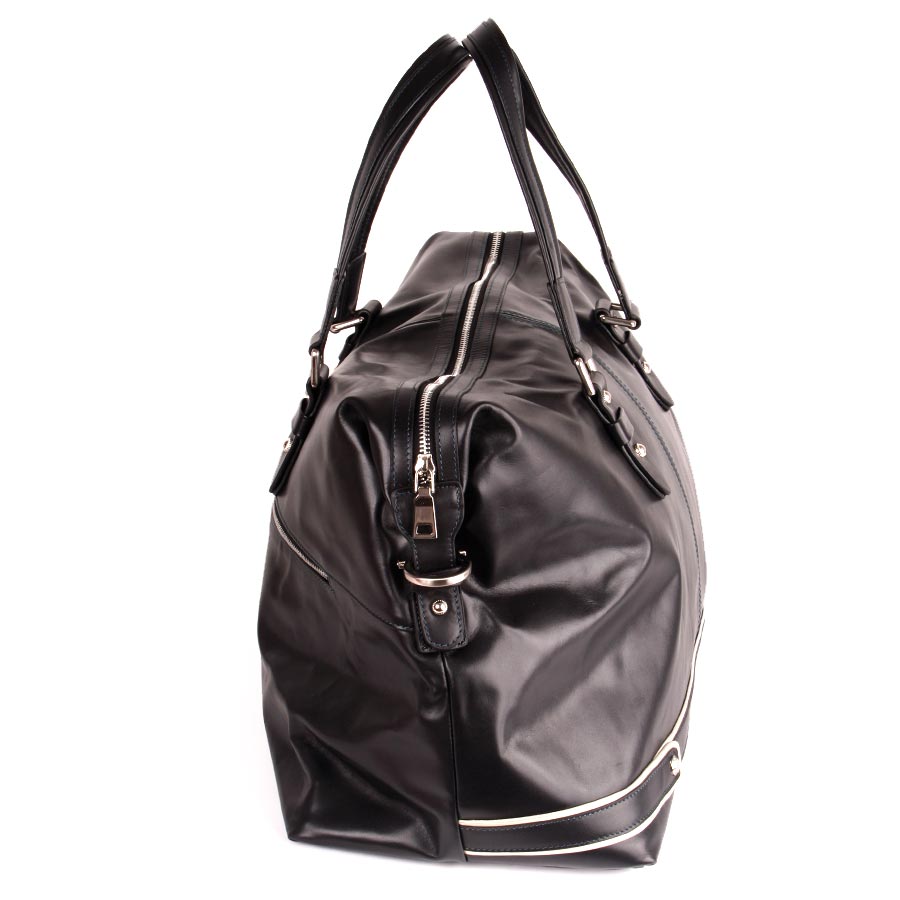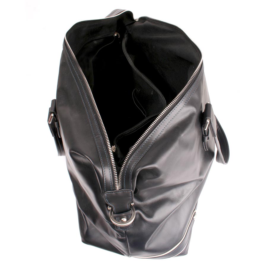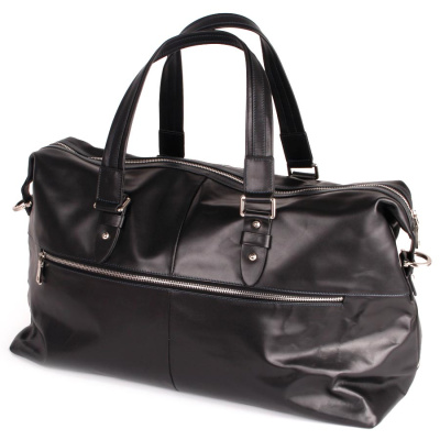 Сумка дорожная фирмы Polar из натуральной кожи. Одно большое основное отделение. Внутри — два кармана на молнии и один открытый карман. На дне сумки металлические ножки. Имеется плечевой ремень.