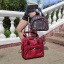 На задней стенке сумки предусмотрено крепление на ручку чемодана.