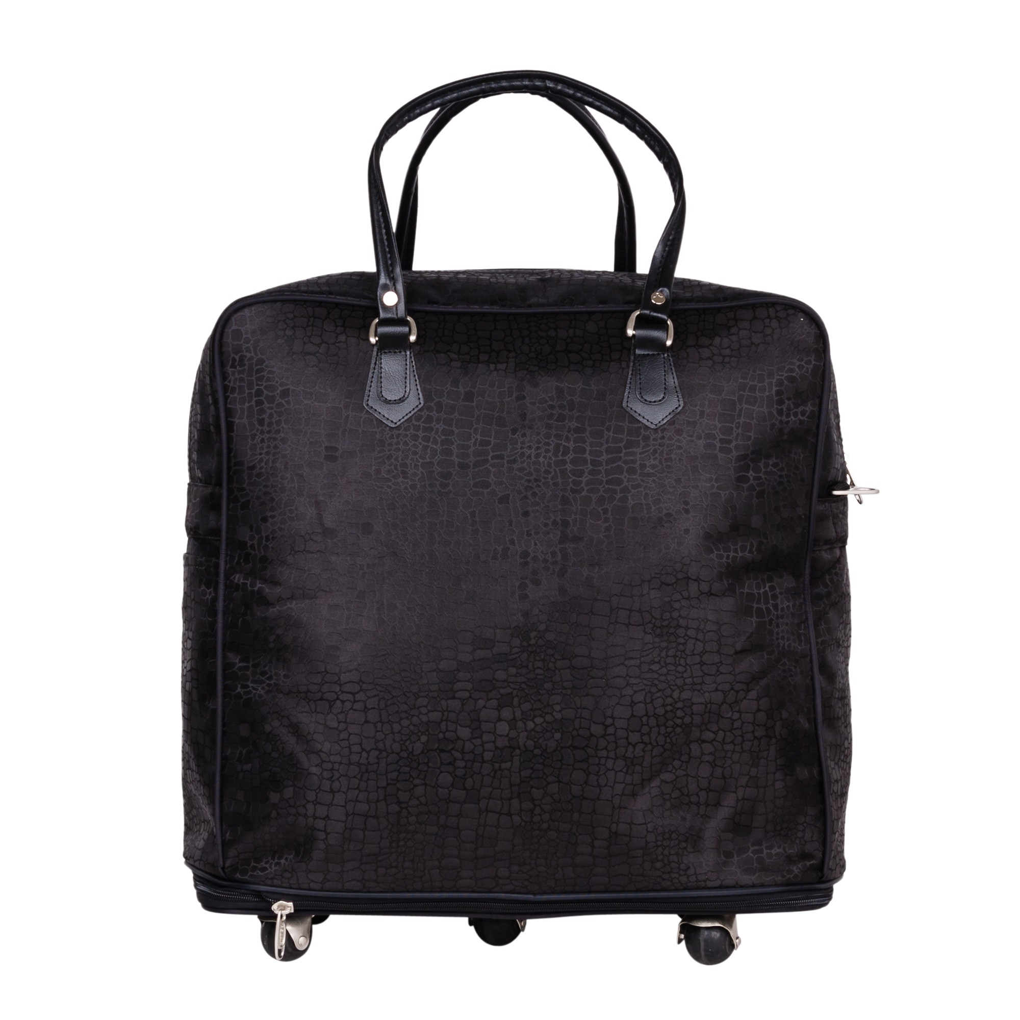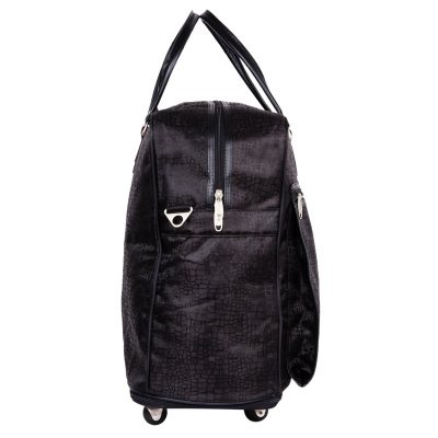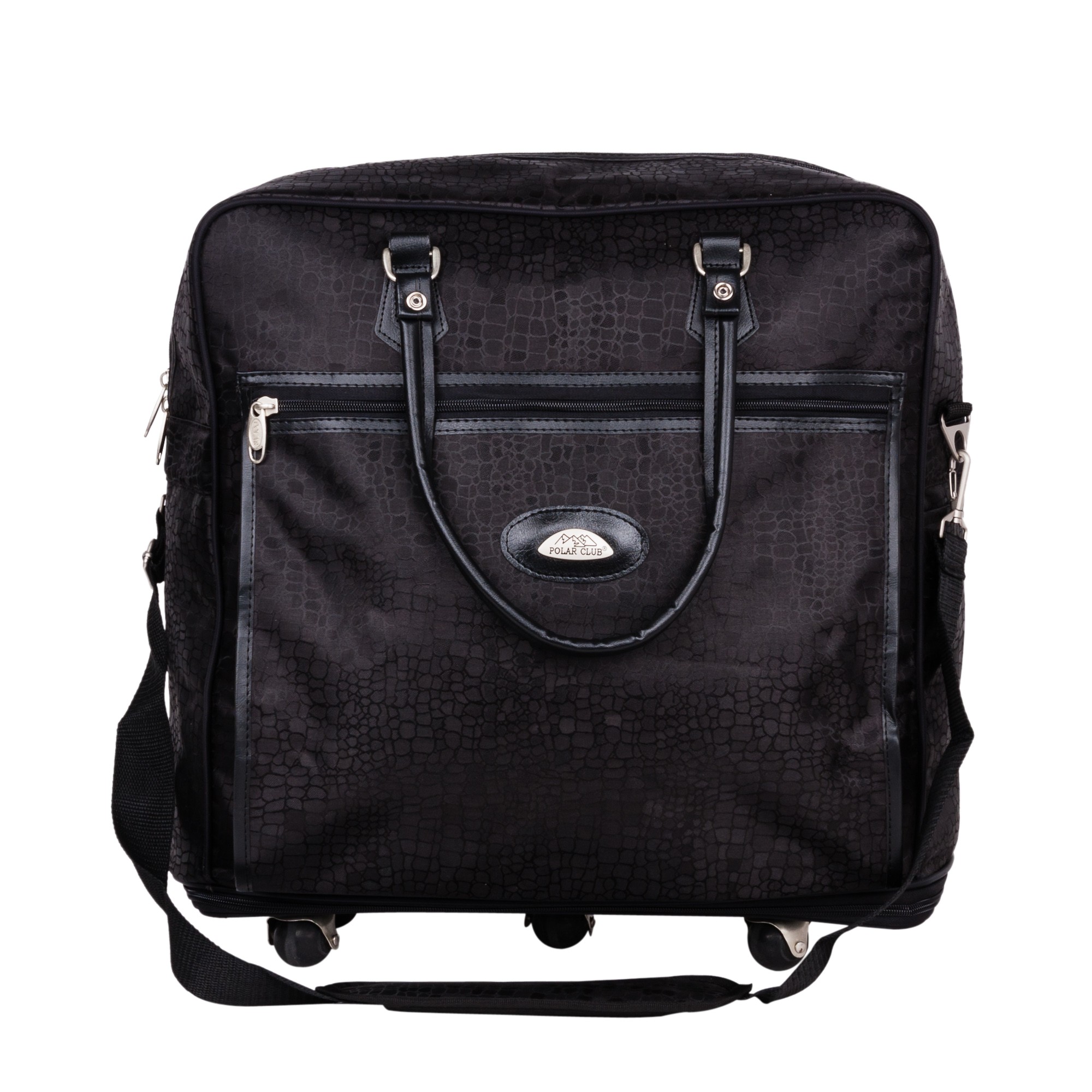 Дорожная сумка Polar изготовлена из высокопрочной синтетической ткани. Одно большое отделение на молнии. Карман на молнии спереди сумки и открытый кармашек сбоку сумки. При необходимости сумка увеличивается на 15 см. Благодаря разъёму вниз. В комплект входит плечевой ремень с пряжкой для регулирования длины. Колеса вращаются на 360 градусов. Высота ручки 23 см.