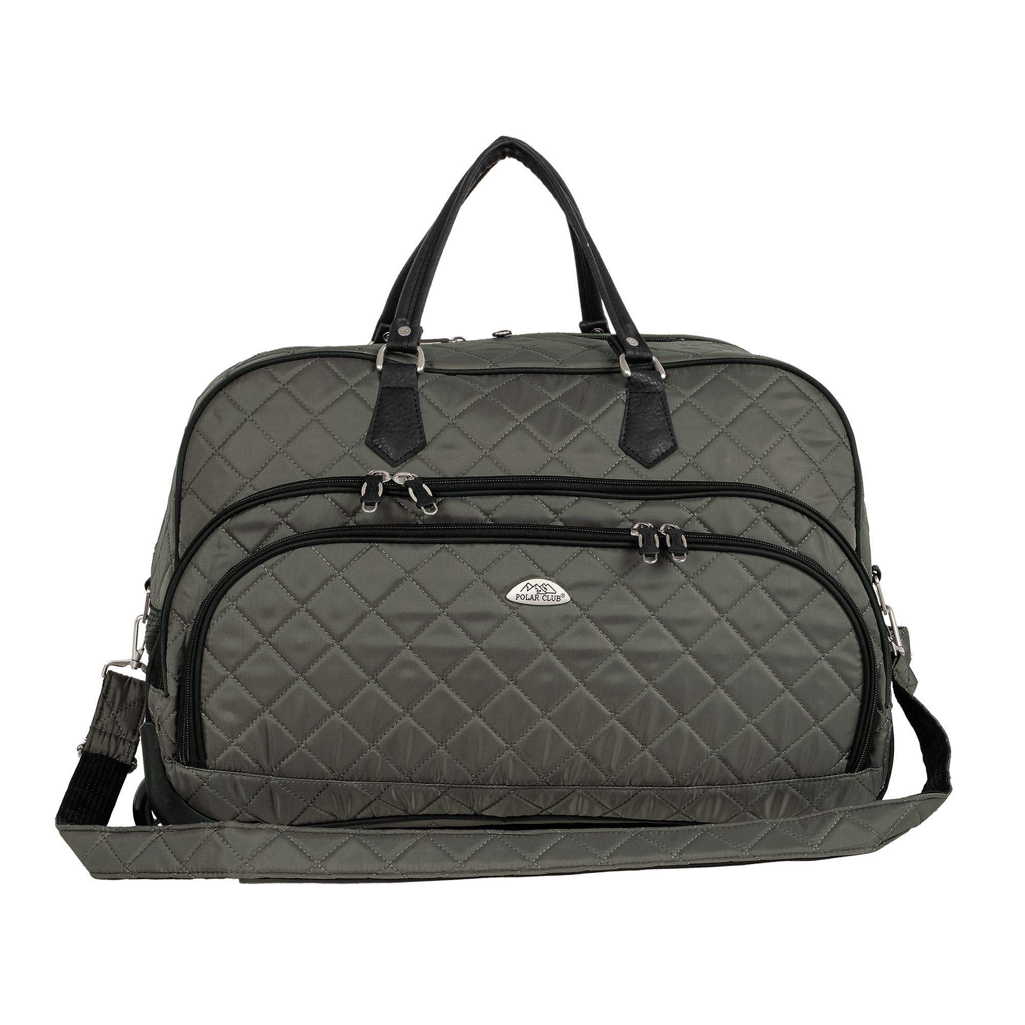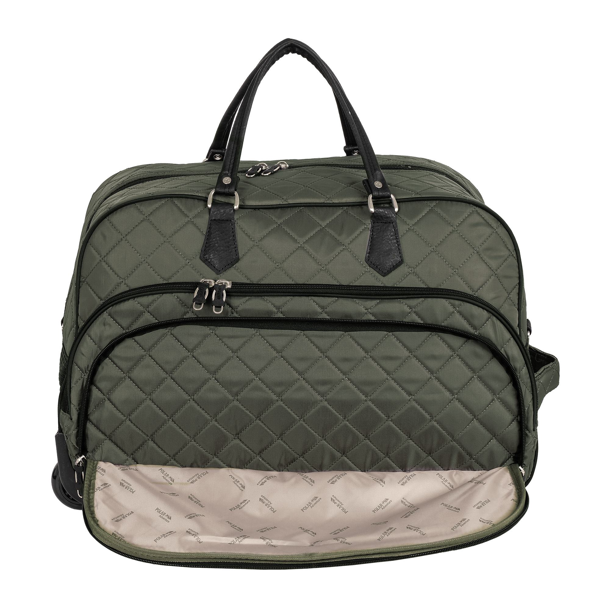 Колесная дорожная сумка Polar. Пластиковые колеса, выдвижная ручка ,выдвигается на 38 см. Имеется съемный плечевой ремень, что бы носить сумку через плечо. Внутри одно большое отделение и один карман сетка для ваших вещей. Два кармана спереди сумки на молнии. Высота ручек 17 см.