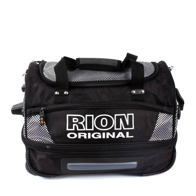 Сумка дорожная Рион на колесах малая. Основное отделение с п-образным клапаном для удобства расположения вещей. Основное отделение можно увеличить на 5 см в объеме расстегнув молнию по периметру. Выдвижная ручка выдвигается на 50 см. В комплекте есть регулируемый плечевой ремень.