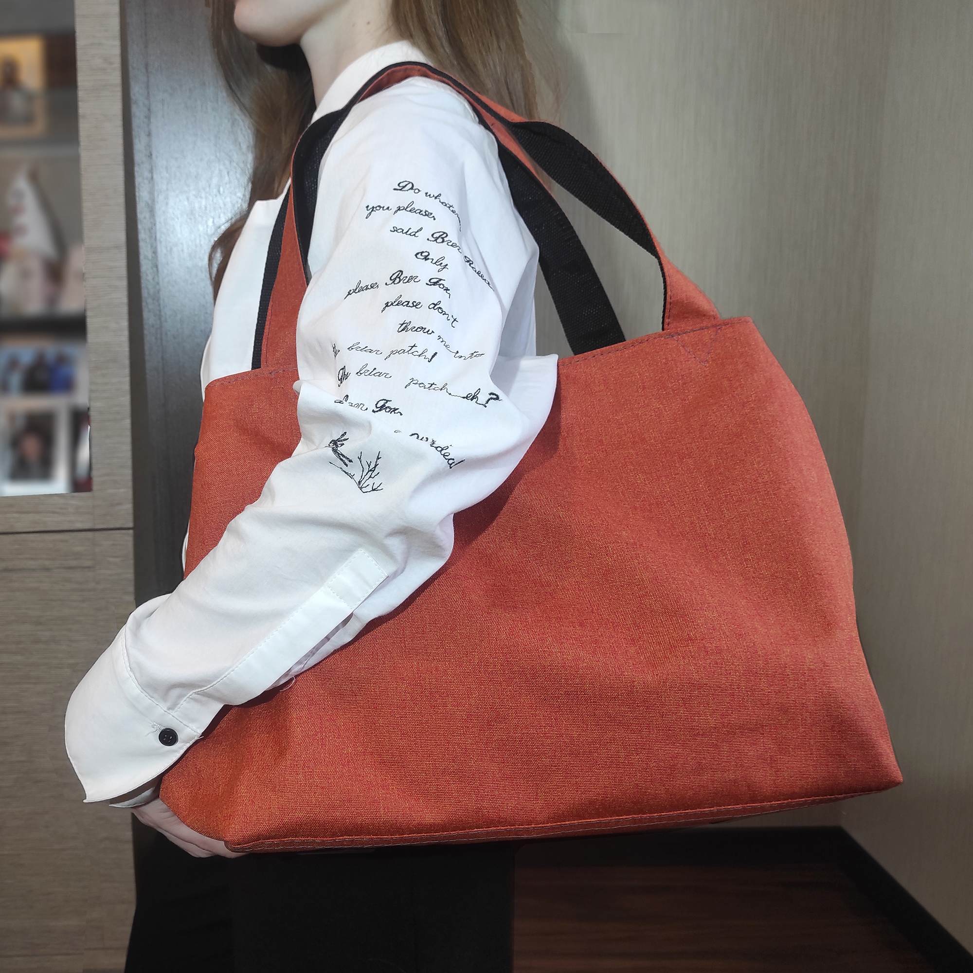 Сумку очень удобно носить в руке, а при желании накинуть на плечо. Ручки мягкие, высота ручек 26 см.