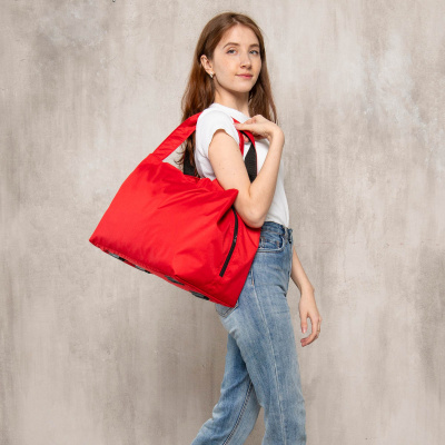 Сумка выполнена из жаккарда красивых расцветок и имеет водоотталкивающую пропитку. Модель отлично держит форму, ткань устойчива к загрязнениям и при необходимости легко чистится.